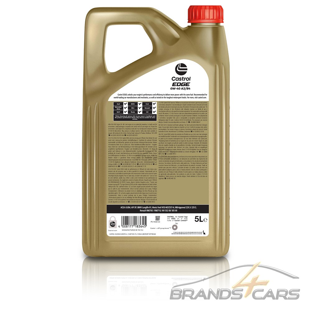 1x 5L Original CASTROL EDGE 0W-40 A3/B4
