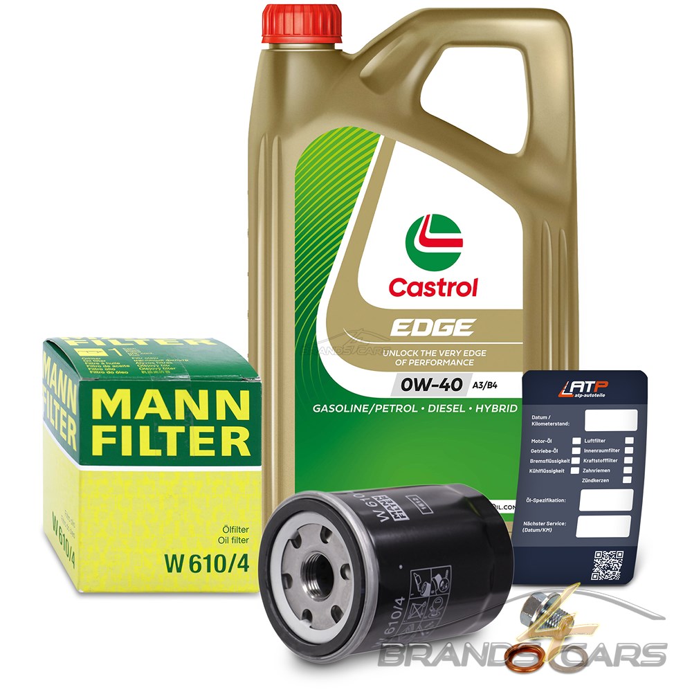 1x Ölwechsel Set - MANN ÖLFILTER + 5 L CASTROL EDGE 0W-40 A3/B4
