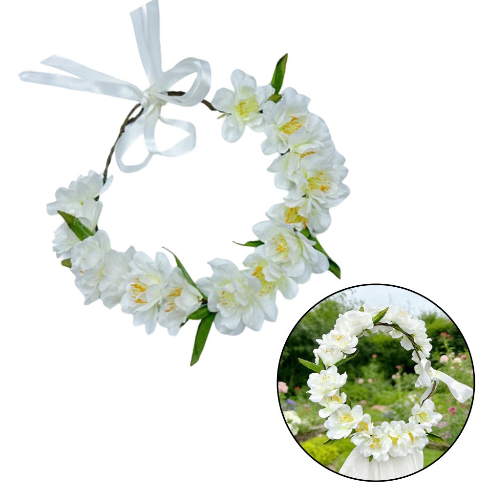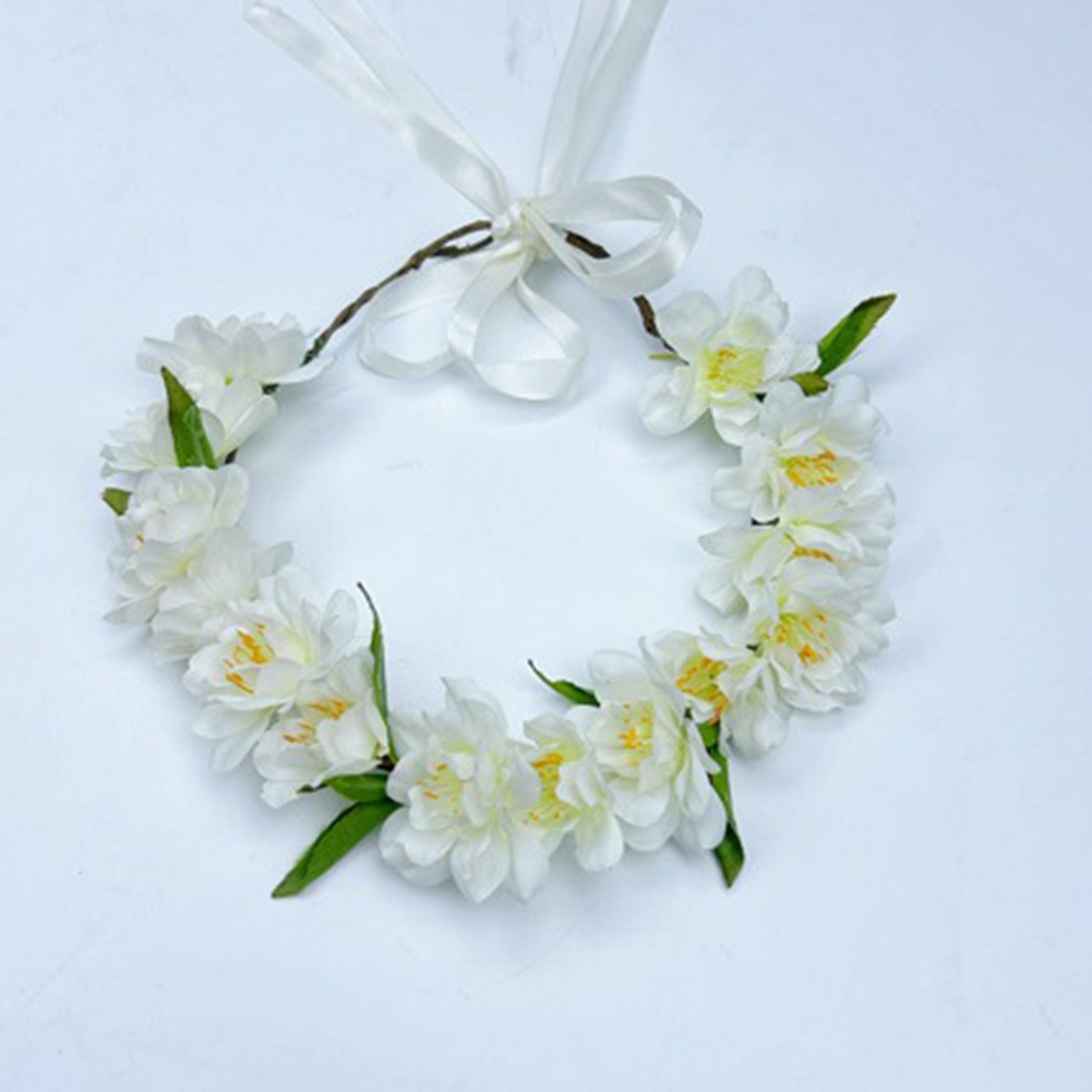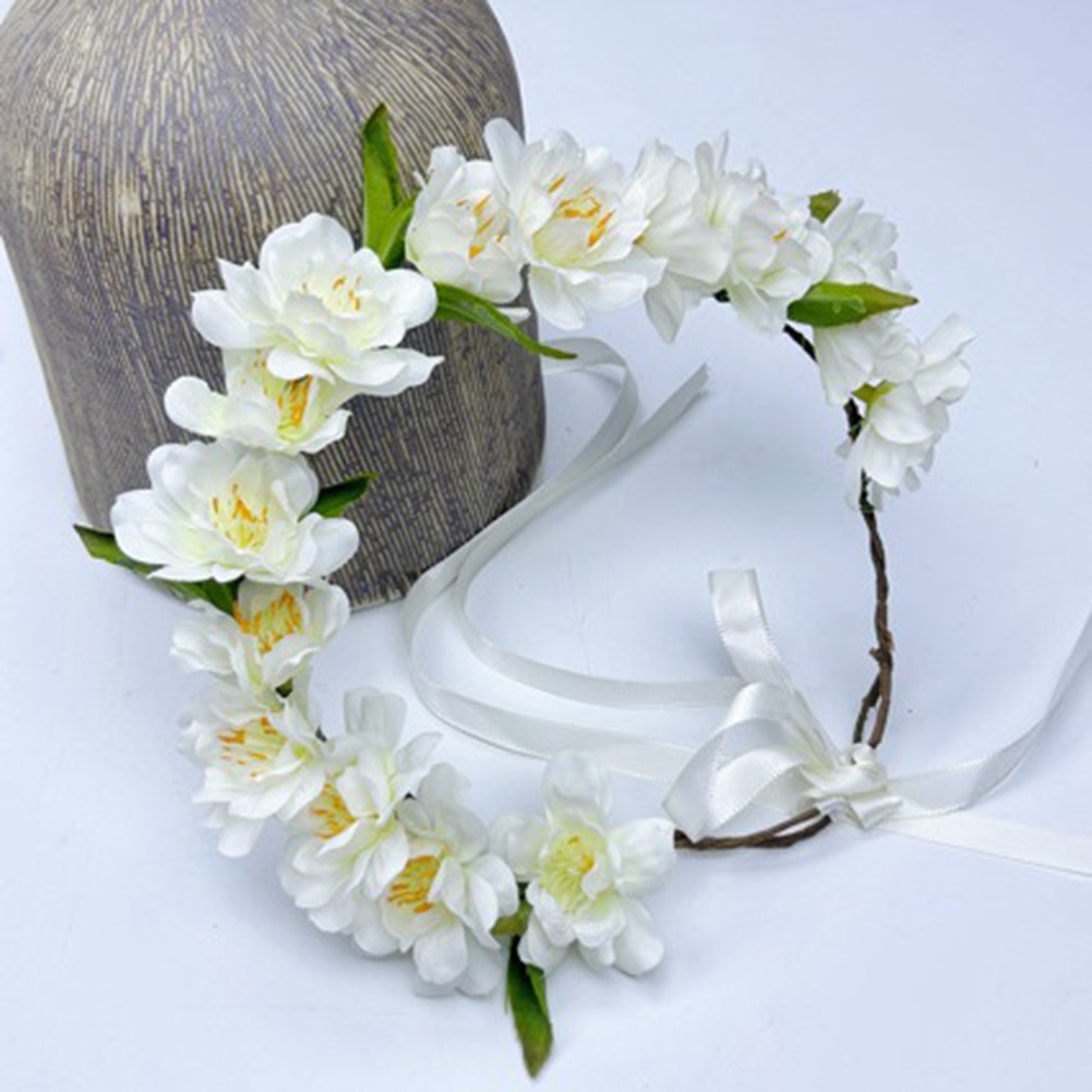 Accessoire Mariage Couronne Fleur Blanche Ruban Réglable pour Fête de Mariage