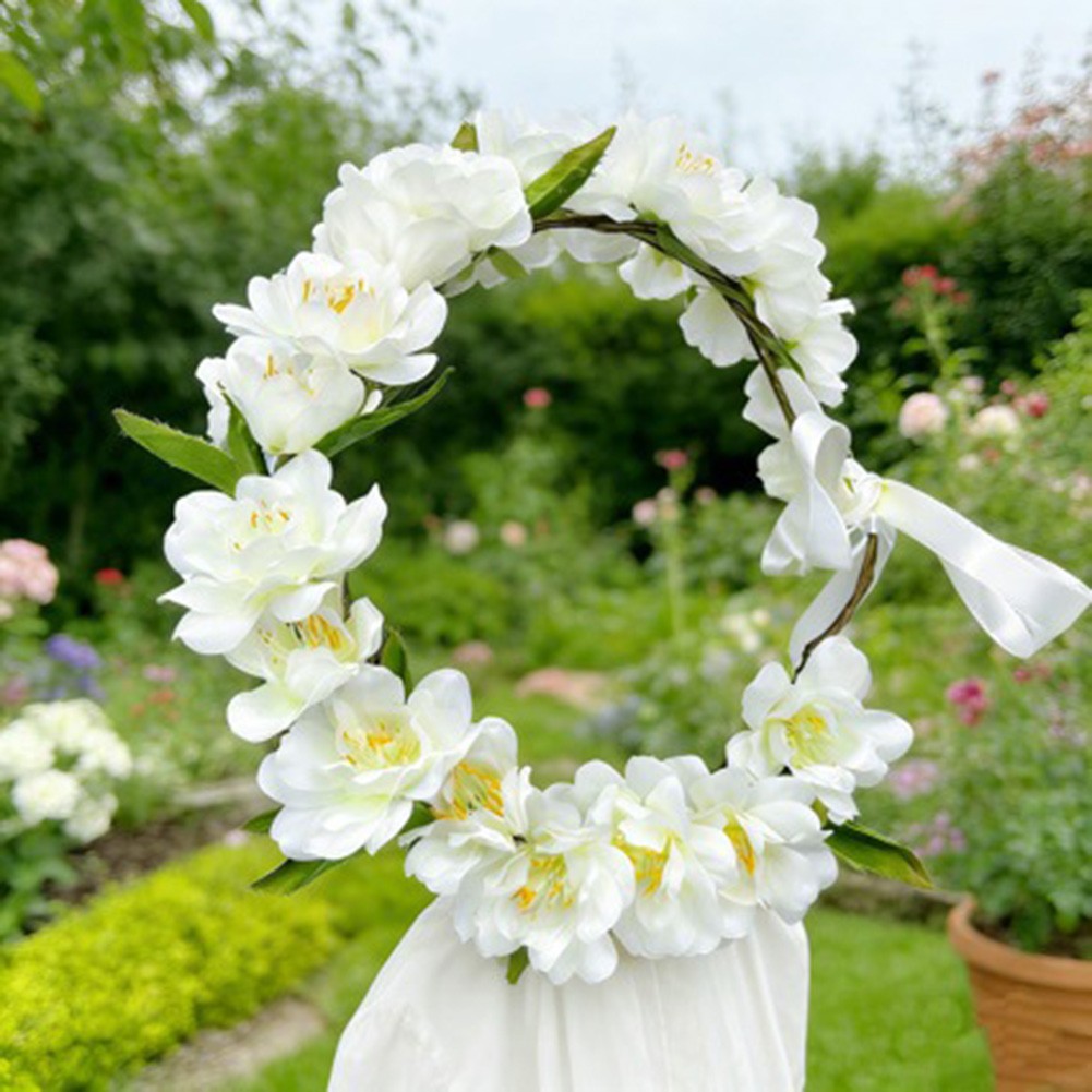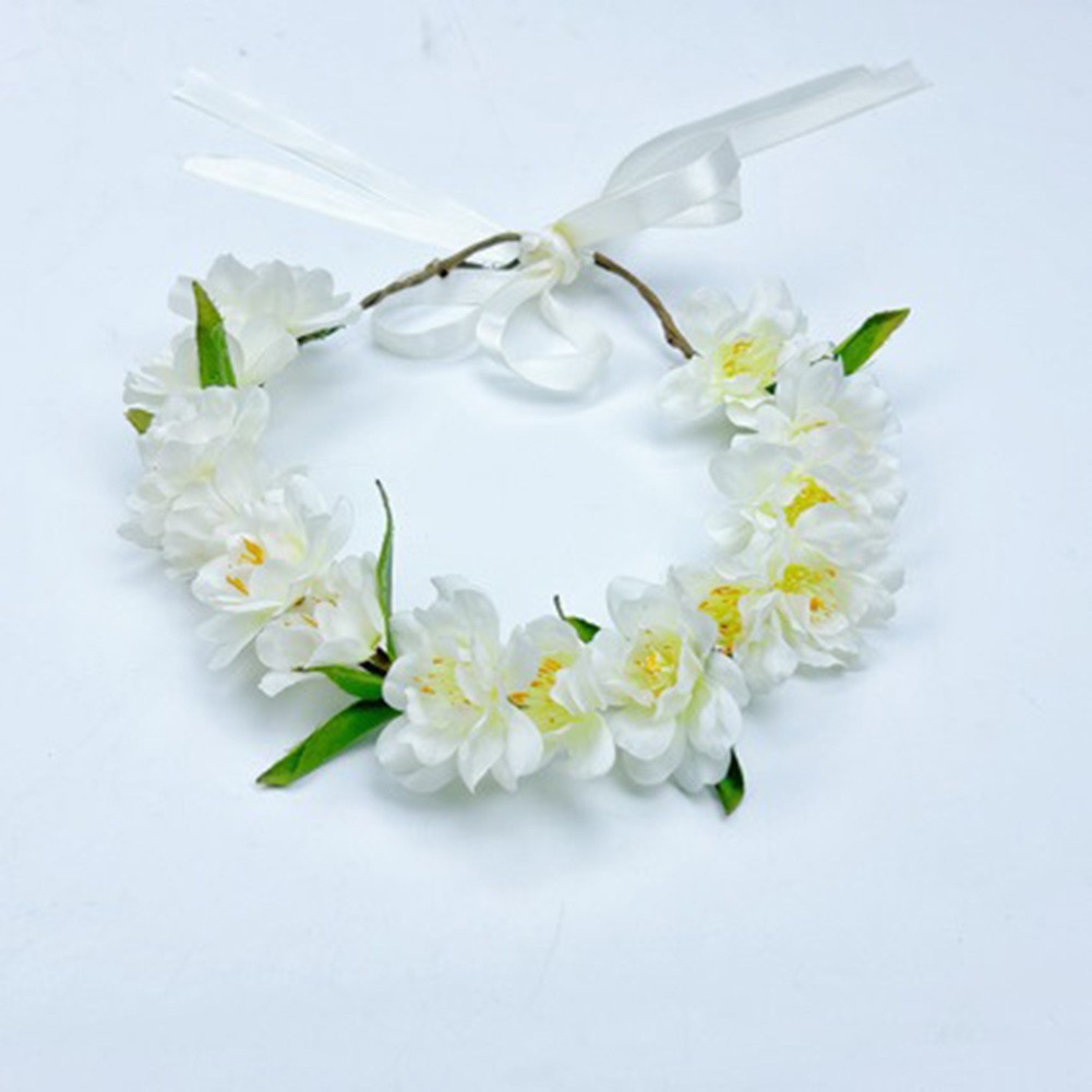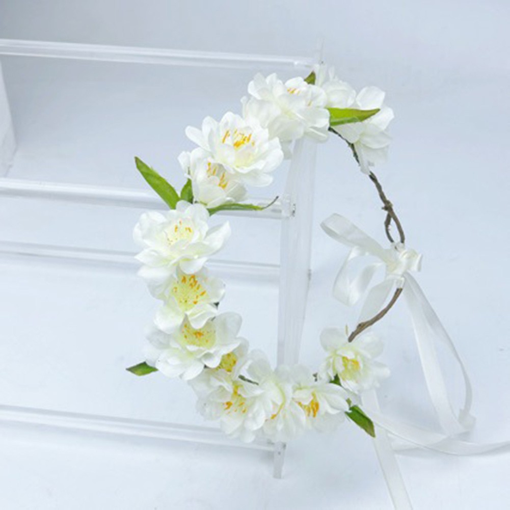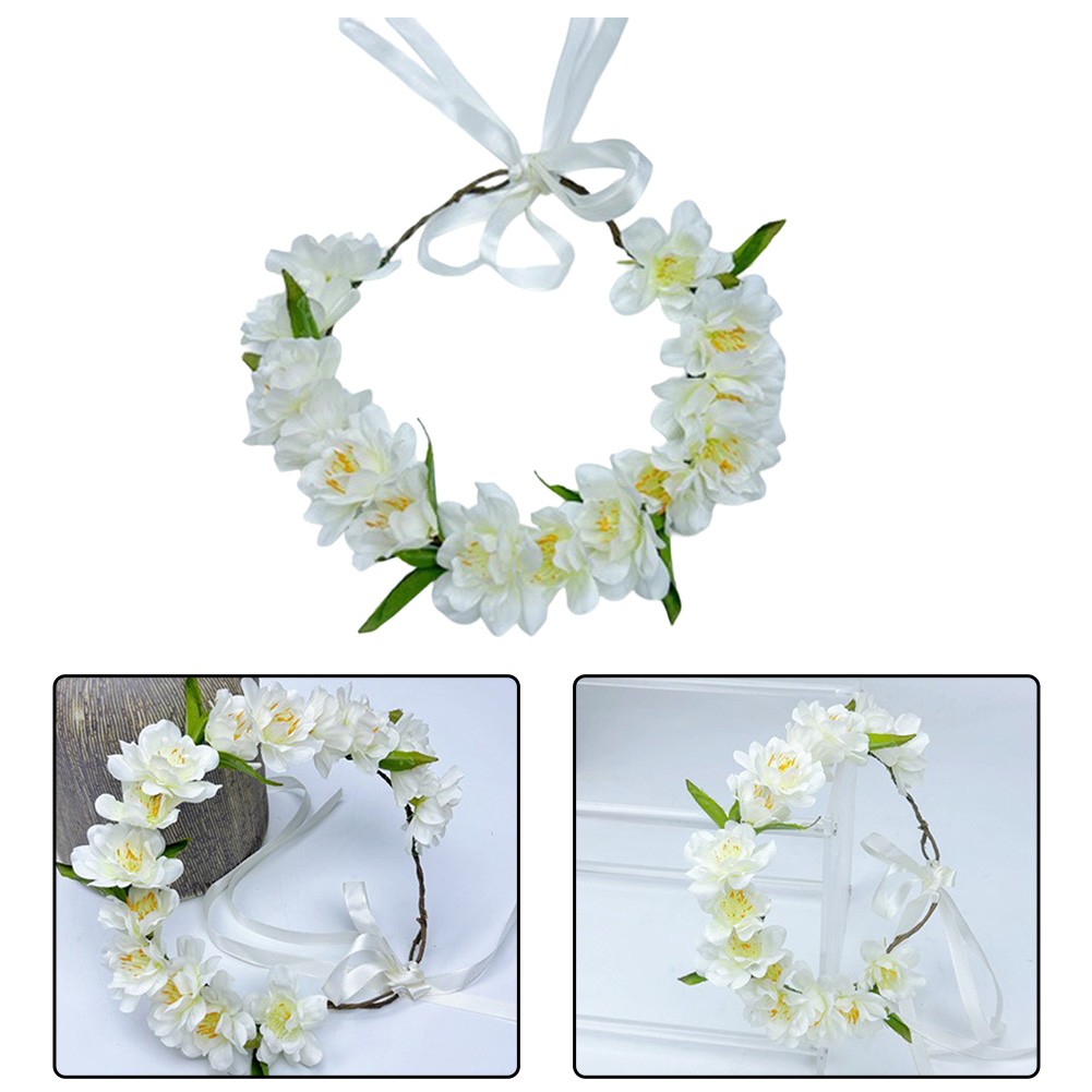Accessoire Mariage Couronne Fleur Blanche Ruban Réglable pour Fête de Mariage