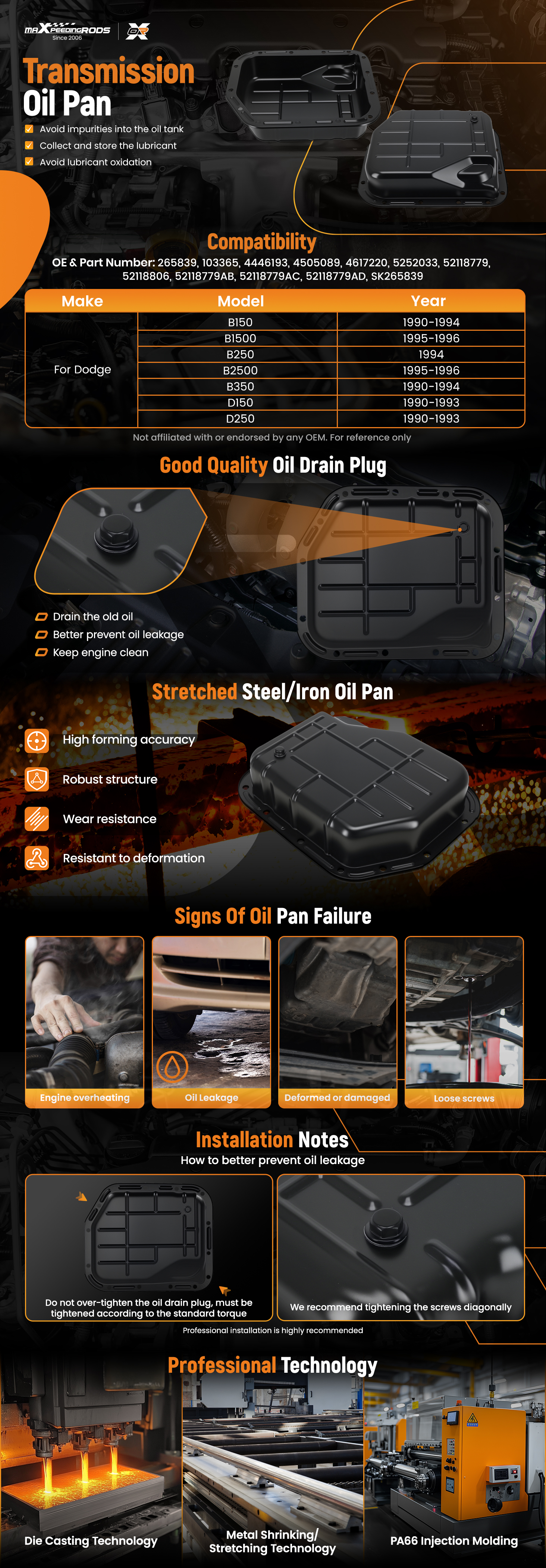 Transmission Oil Pan for Dodge Ram 1500 1994-2001 52118779AB Direct Replacement