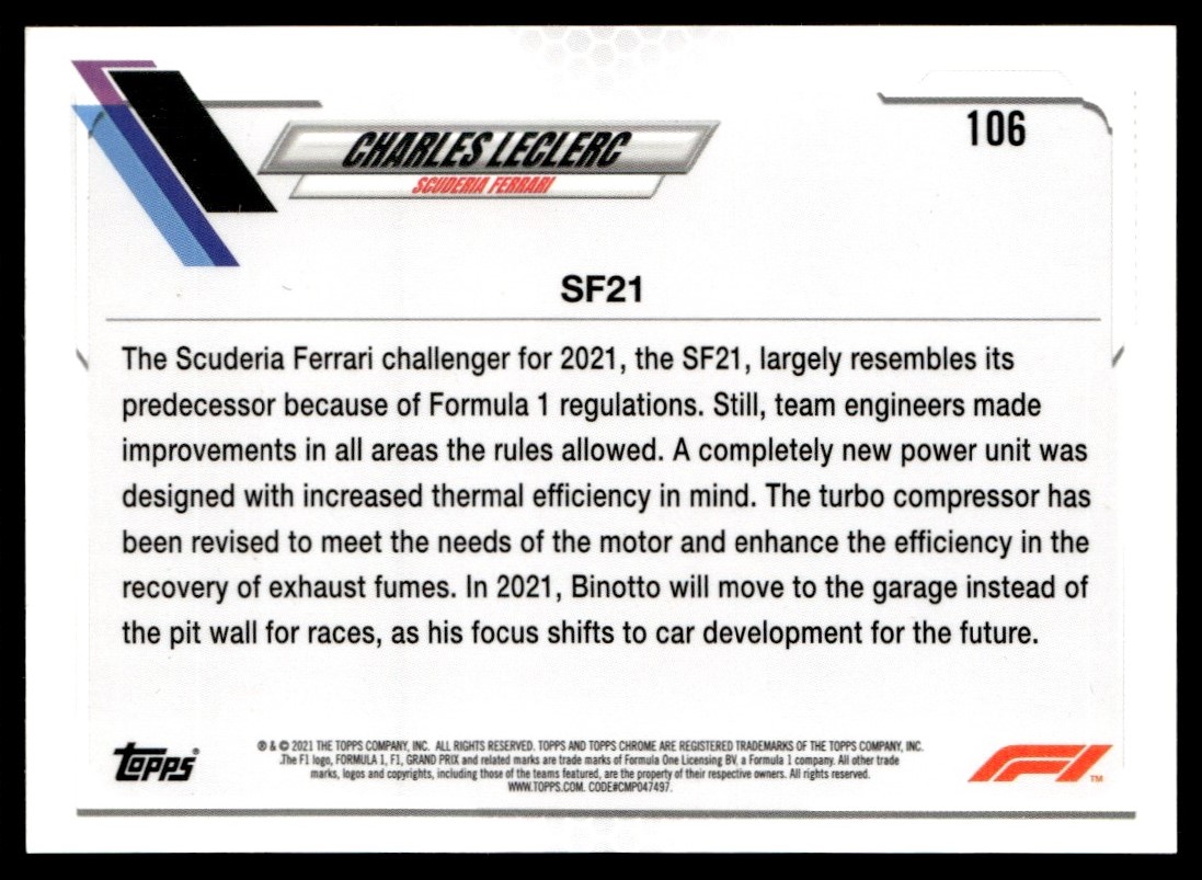 2021 Topps Chrome Formula 1 Charles Leclerc Scuderia Ferrari #106