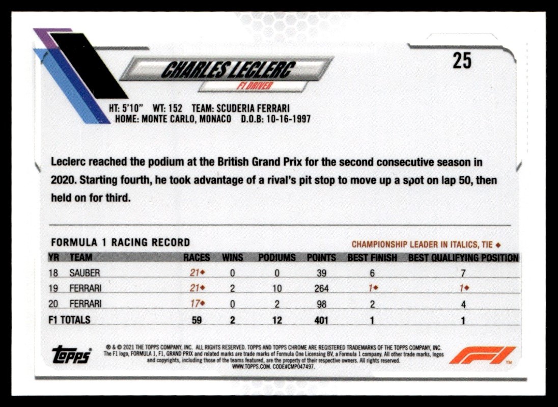 2021 Topps Chrome Formula 1 Charles Leclerc Scuderia Ferrari #25