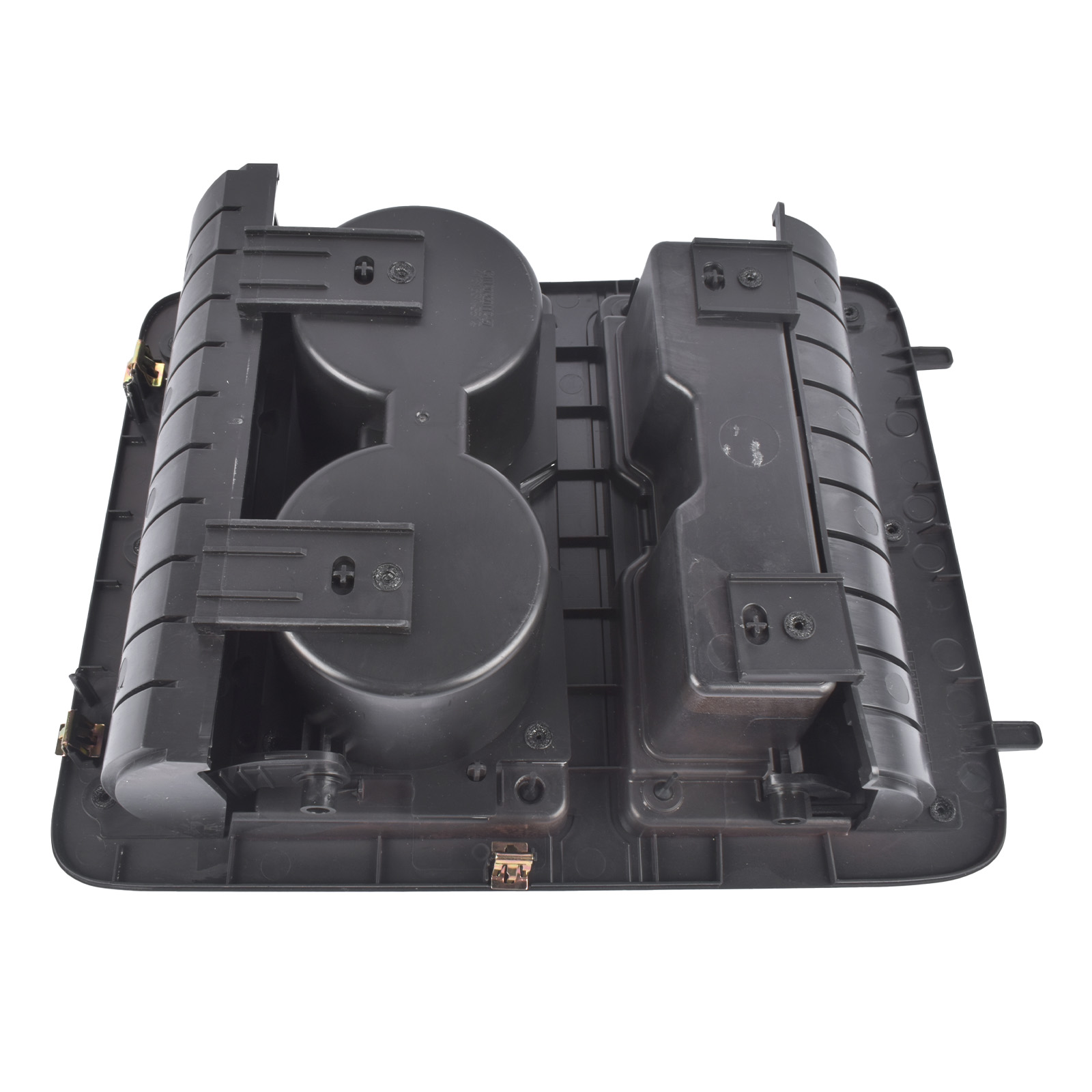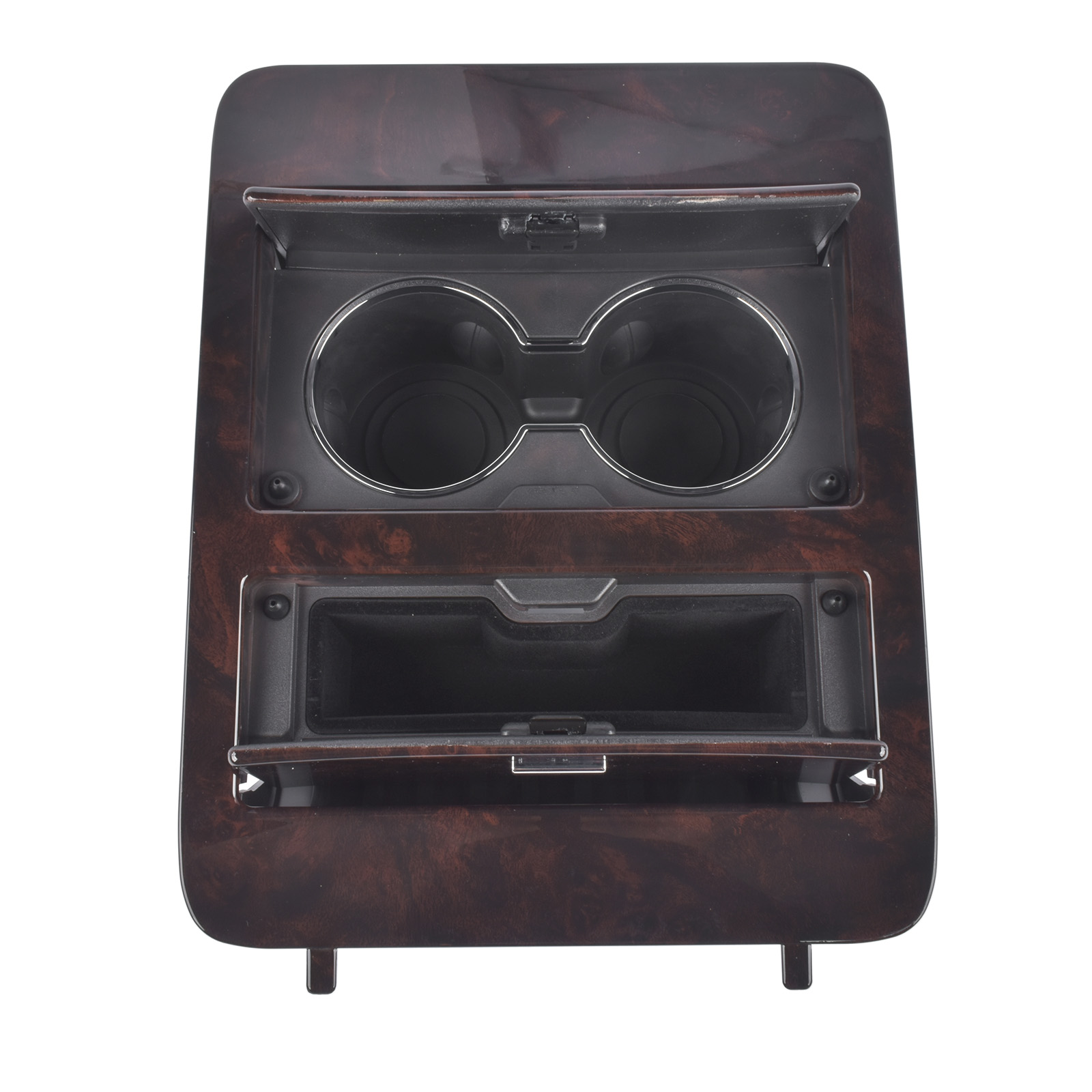 Replacement or add on for your center console with this woodgrain cup and storage bin with pop up lids