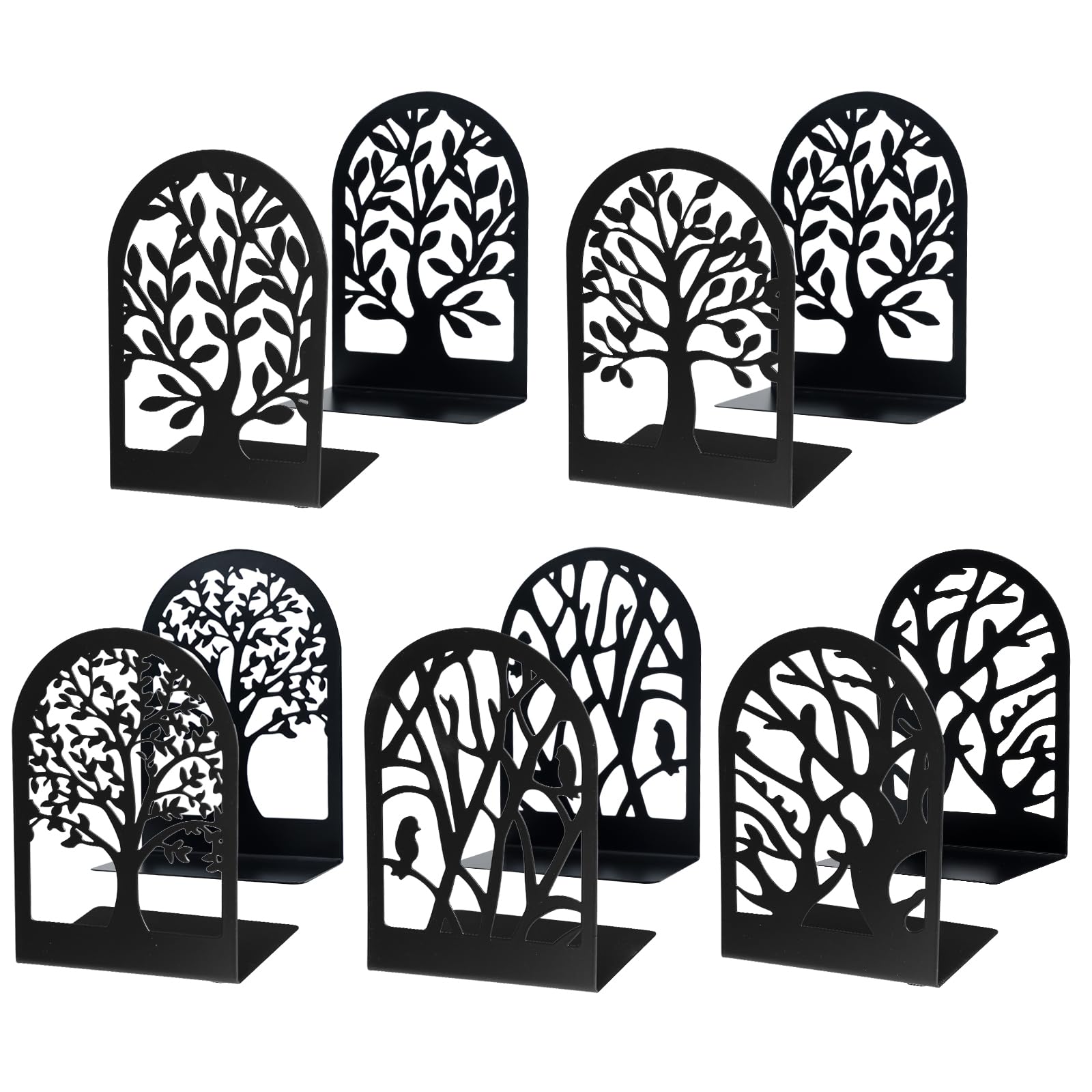 EOOUT Bookends for Shelves Decorative, 5 Pairs of Tree Black