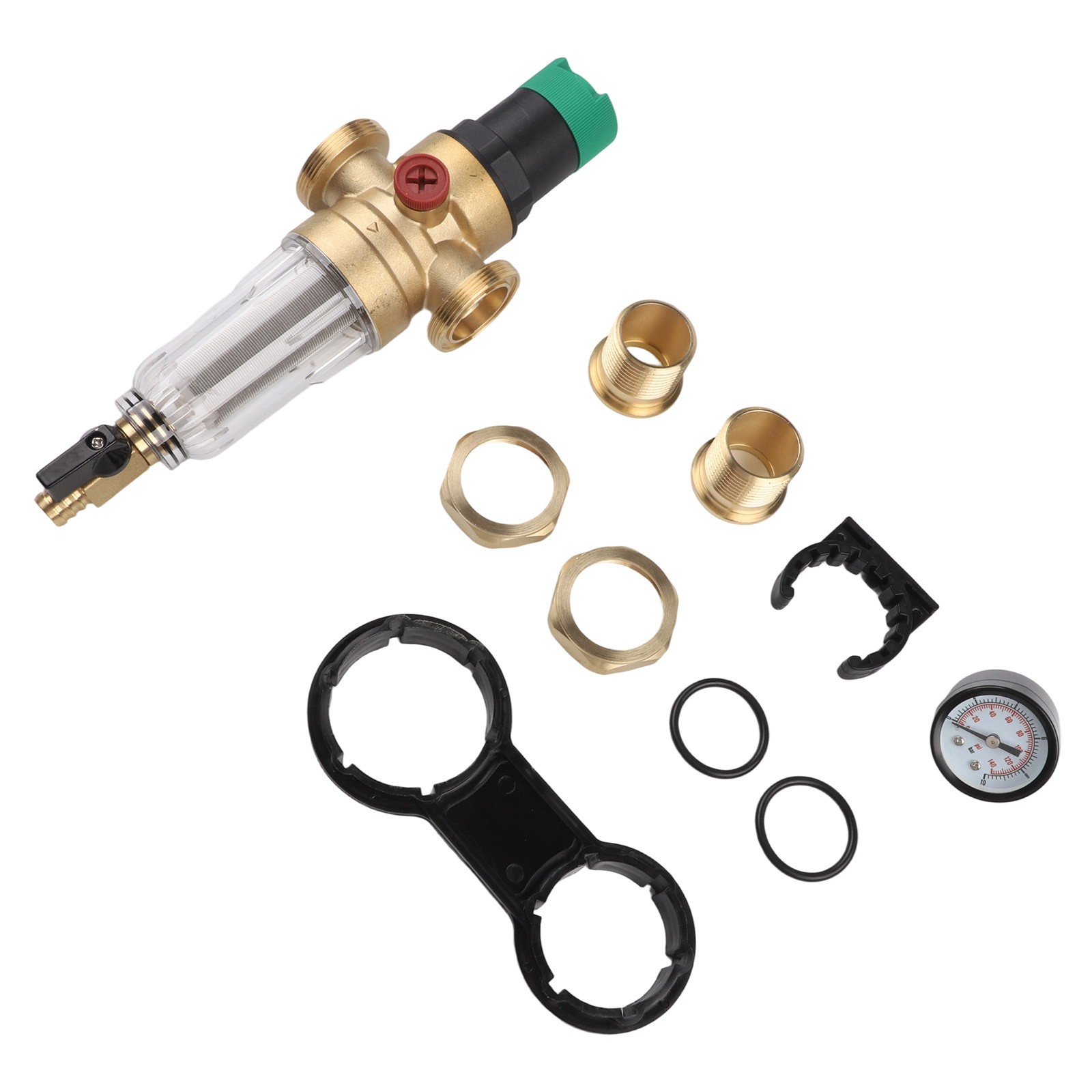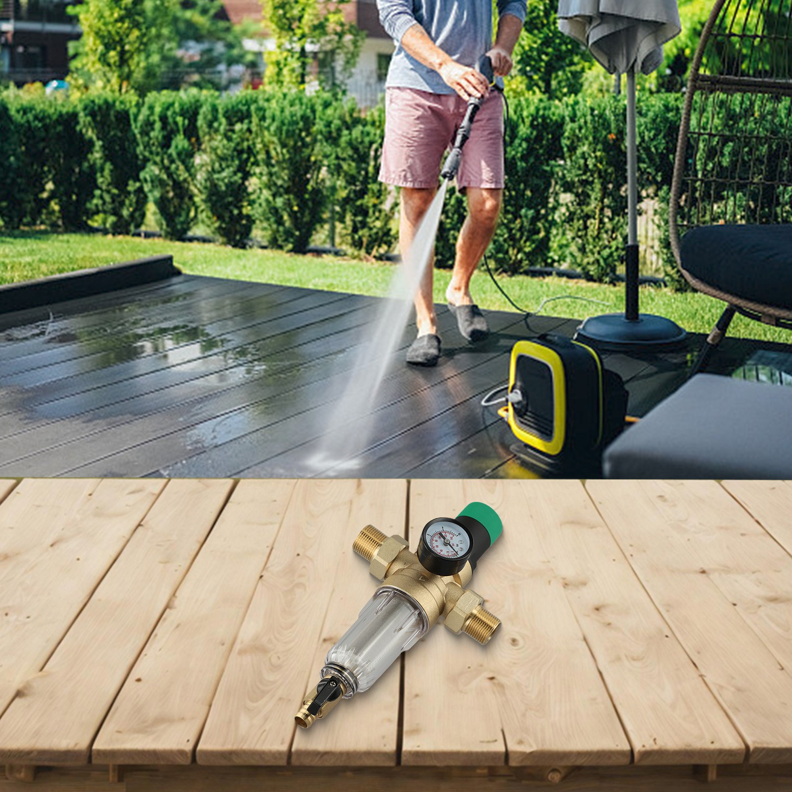 *Conception compacte et facile à nettoyer : Économise de l'espace d'installation, tissu filtrant lavable. Si une certaine quantité de saleté s'est accumulée au fond du pré-filtre, les eaux usées doivent être évacuées en temps voulu. Placez un récipient comme un seau pour sous la vanne de vidange. Ouvrez la vanne de vidange pour éliminer la saleté.