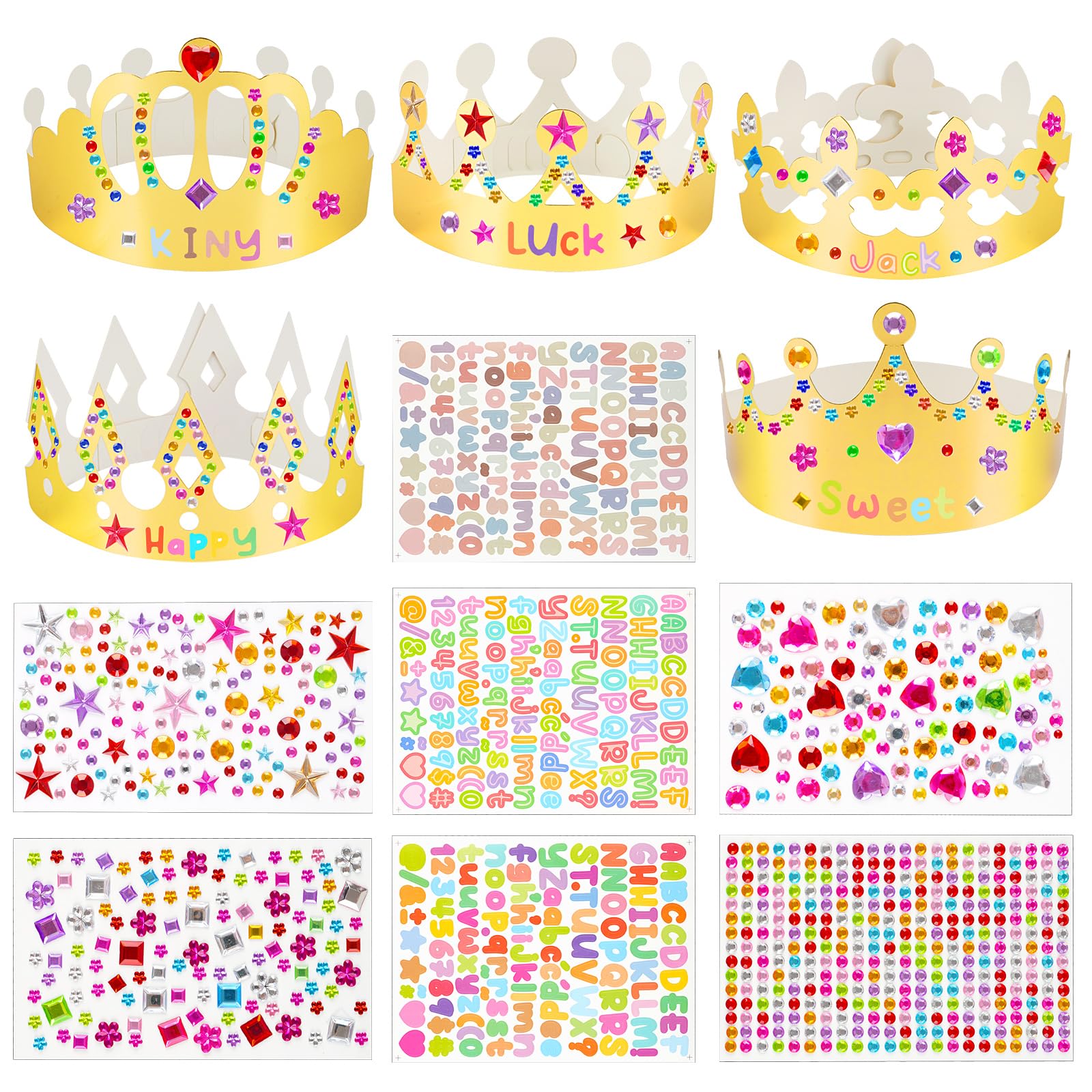 Dazzling & Colorful Self-Adhesive Stickers: These self-adhesive stickers include colorful acrylic jewels in various shapes, plus vibrant number and letter stickers. Strong sticky, they’re perfect for decorating crowns and tiaras, staying securely in place without peeling