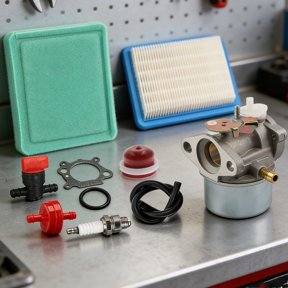1 Carburetor+1 air filter + 1 air filter pre-cleaner + 1 gasket + 1 sealing ring + 1 bulb + 1 fuel filter + 1 fuel pipe + 1 stop valve + 1 spark