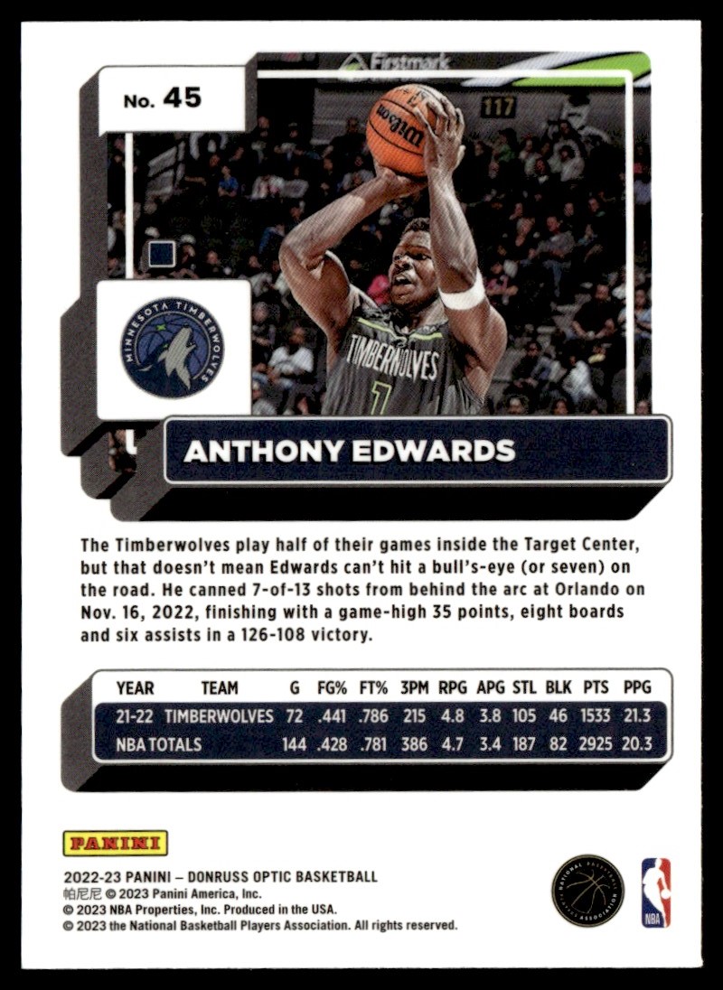 2022-23 Donruss Optic Anthony Edwards Minnesota Timberwolves #45