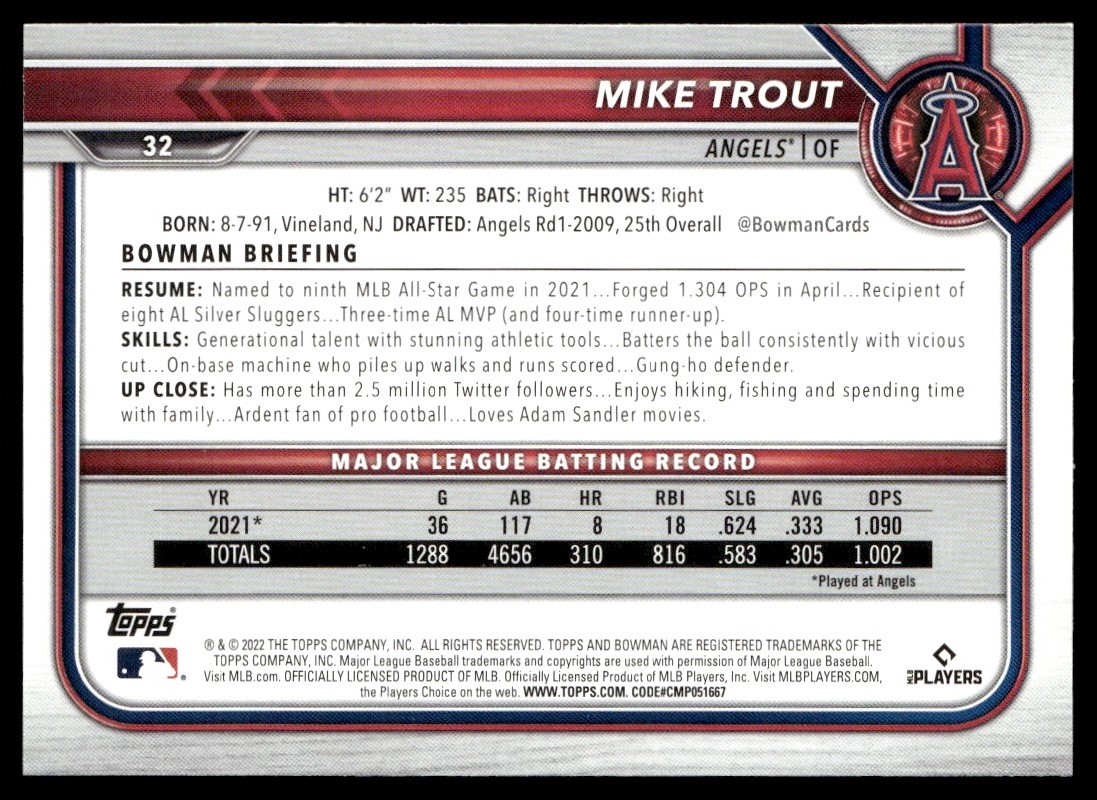 2022 Bowman Mike Trout Los Angeles Angels #32