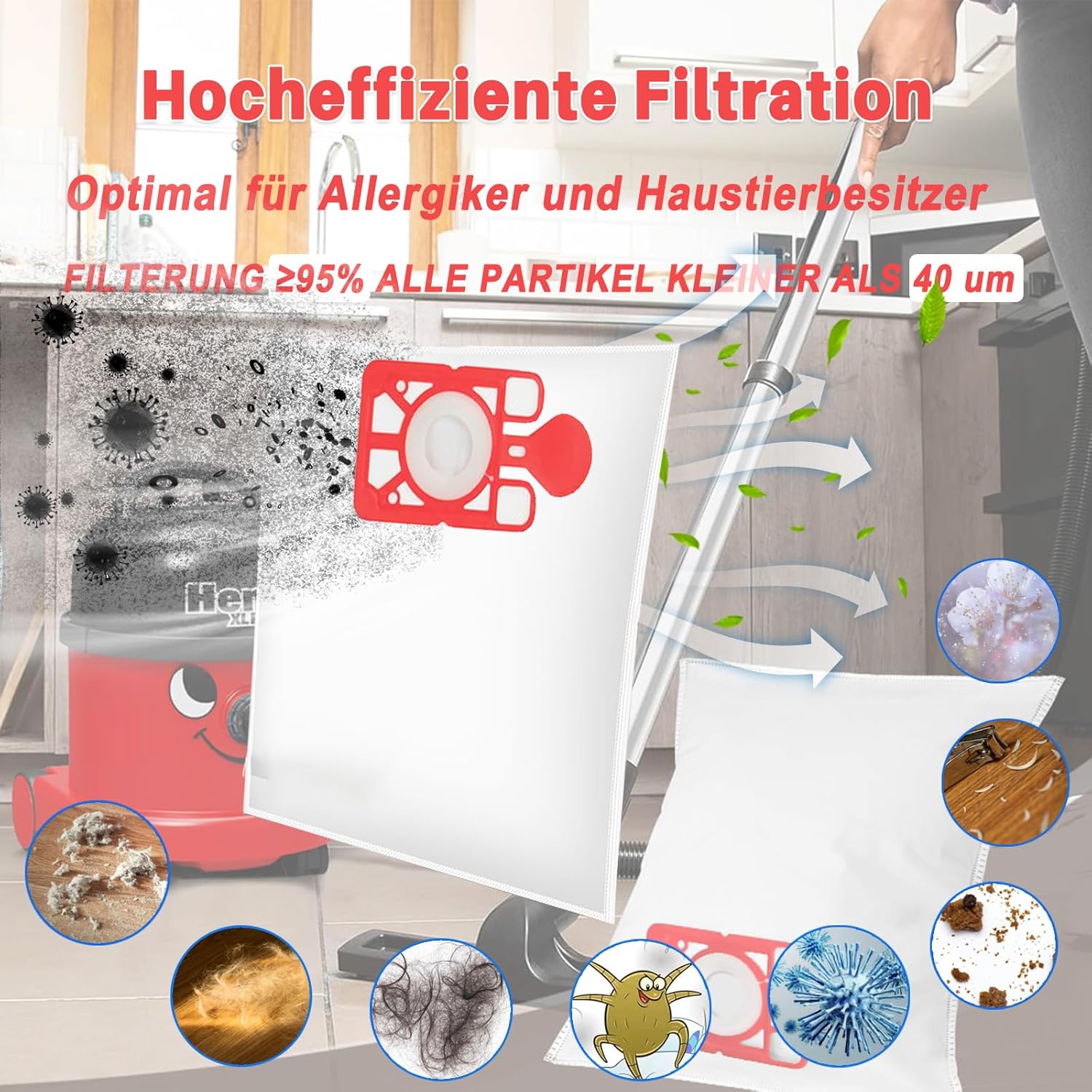 Verstopfungsschutz: Der regelmäßige austausch des ersatzbeutel fürJames verhindert das Verstopfen des Staubsaugermotors durch Haare, Staub und andere feine Gegenstände