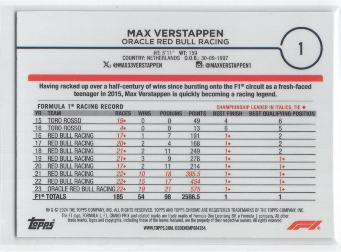 #1 2024 Topps Chrome Formula 1 BASE / Max Verstappen Oracle Red Bull Racing