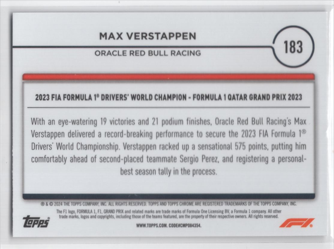 #183 2024 Topps Chrome Formula 1 BASE > Max Verstappen Oracle Red Bull Racing