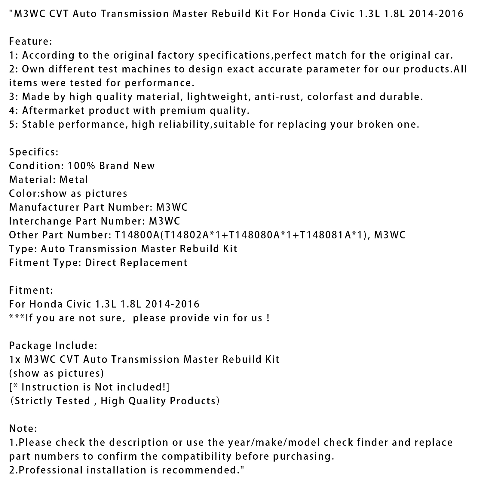 M3WC CVT Auto Transmission Master Rebuild Kit For Honda Civic 1.3L 1.8L 2014-2016