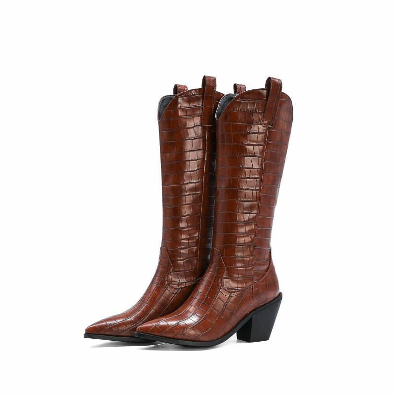 Women's Mid-Calf Boots Cowboy Pointed Toe Chunky Heel Knight Boot Western Shoes