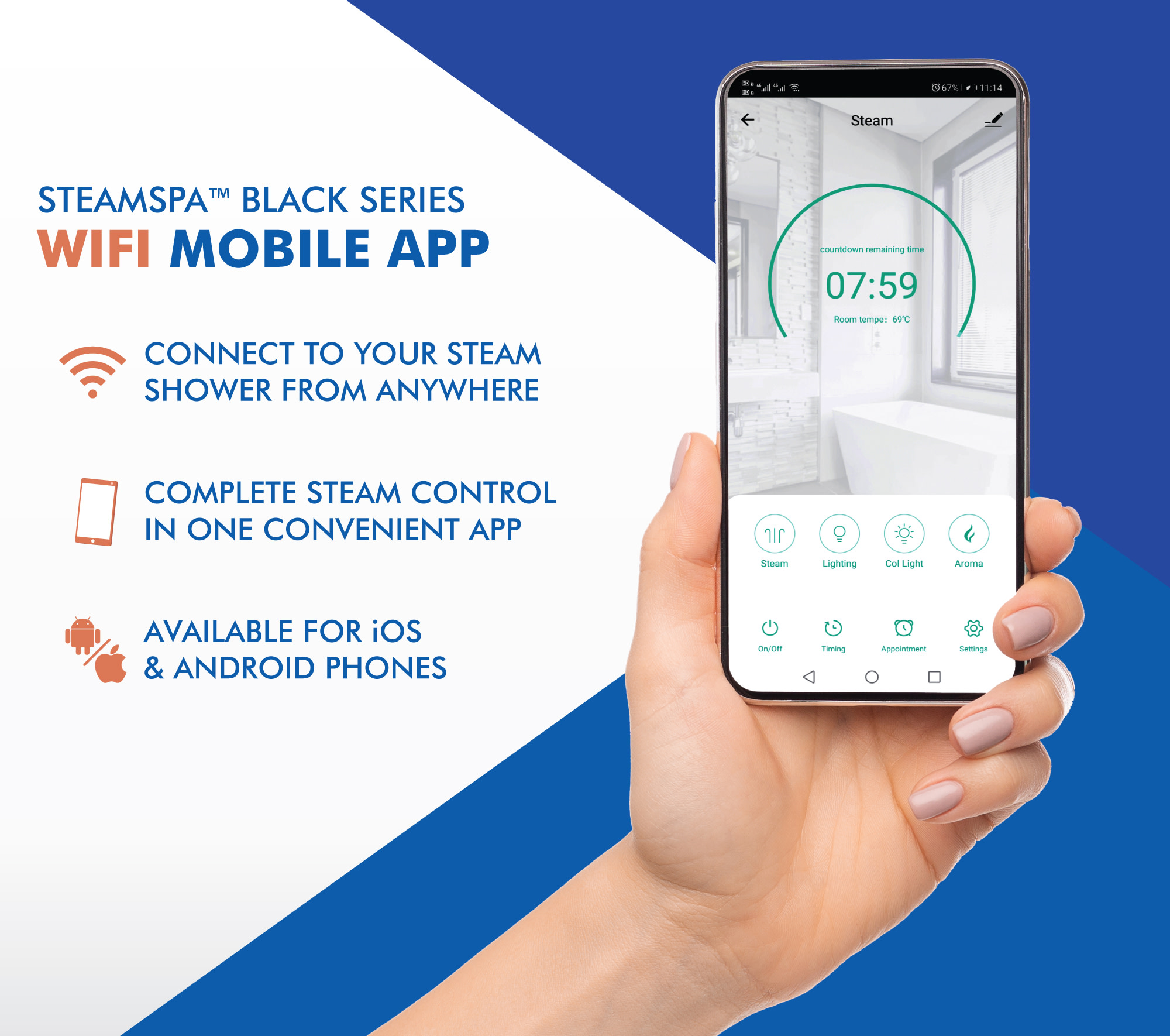 - WIFI : Take full control of your steam shower from anywhere using our new wifi app.