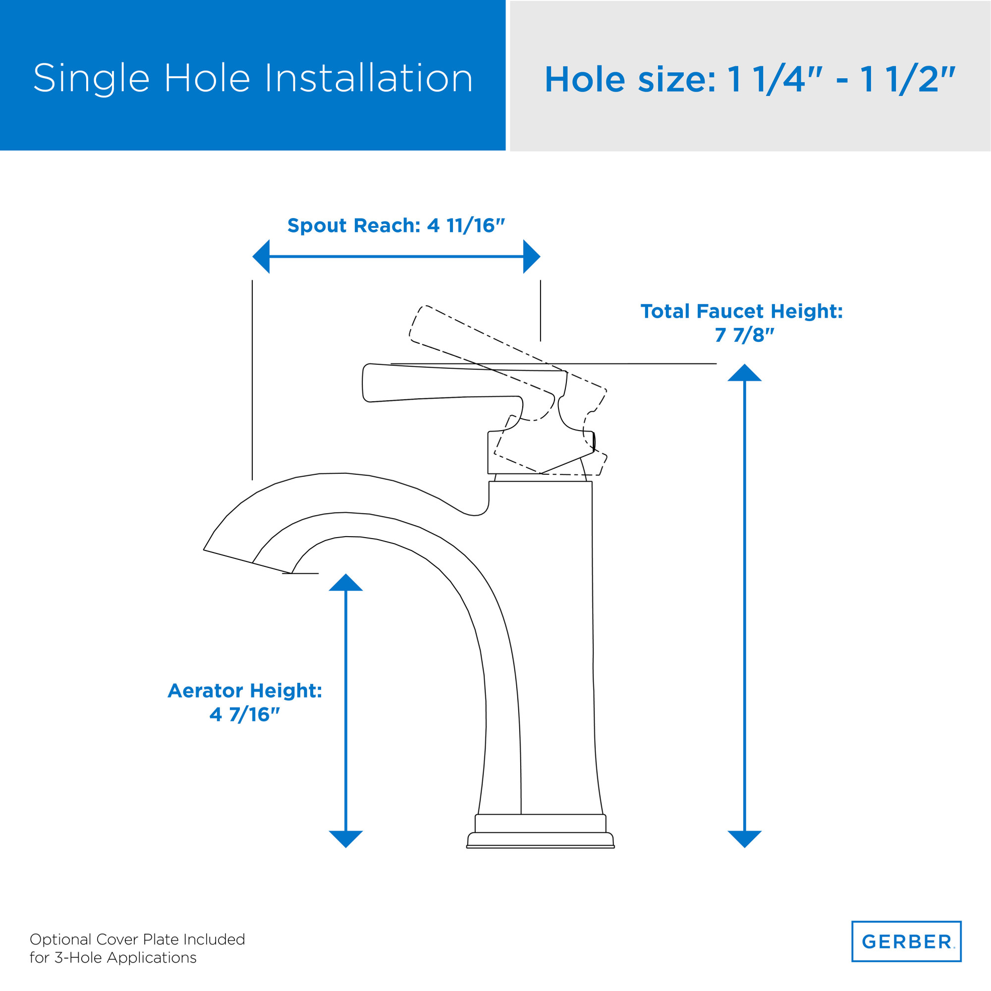 - Spout Height: 6-1/8" (deck to spout outlet)