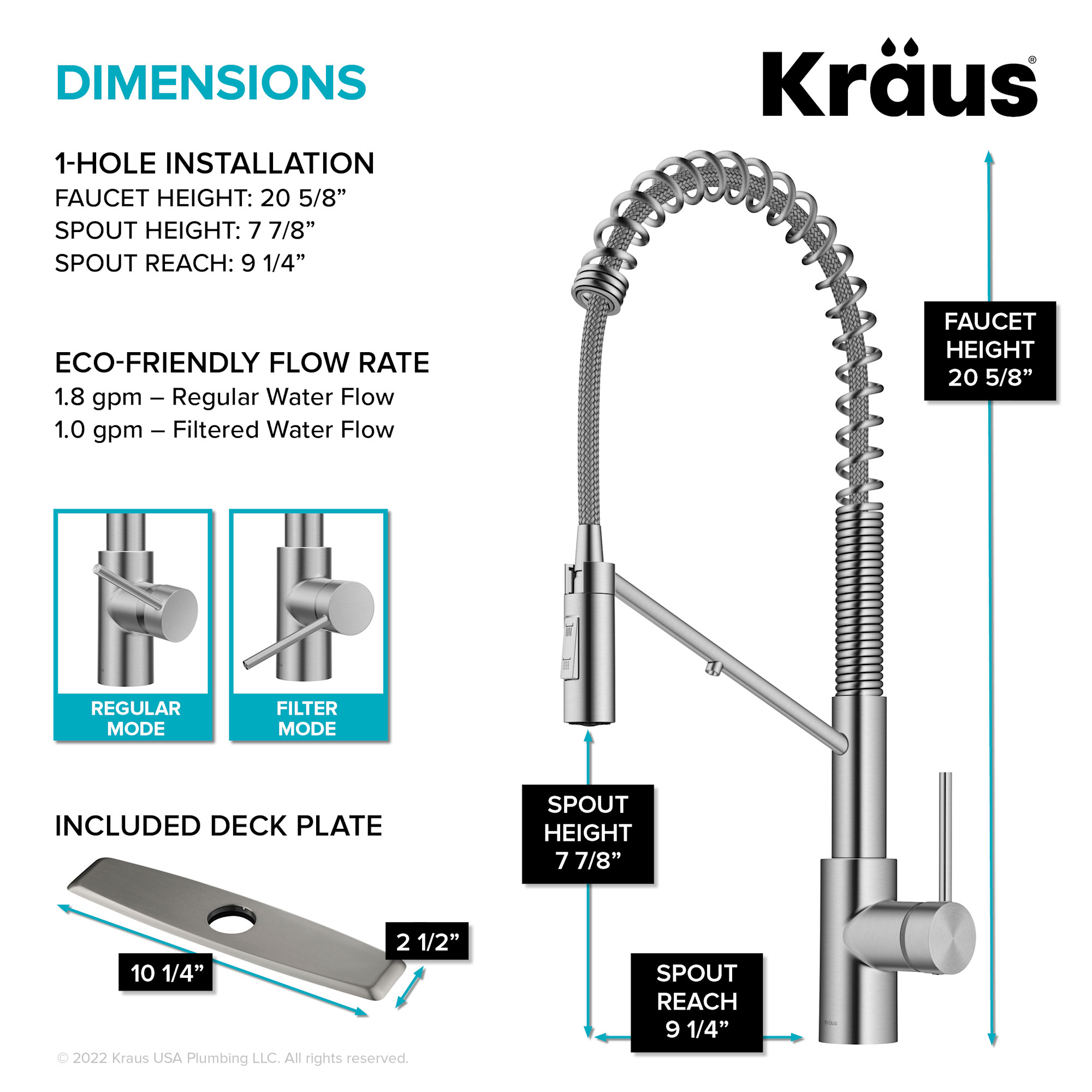 - Covered under Kraus's limited lifetime warranty