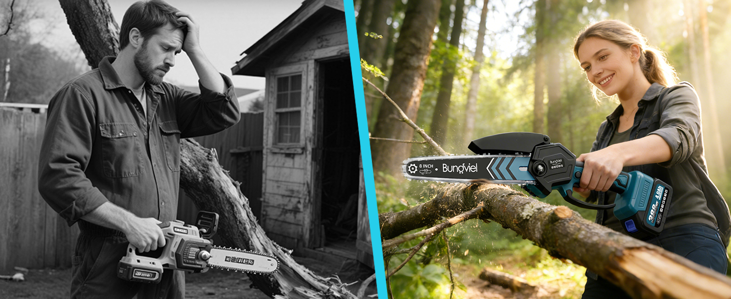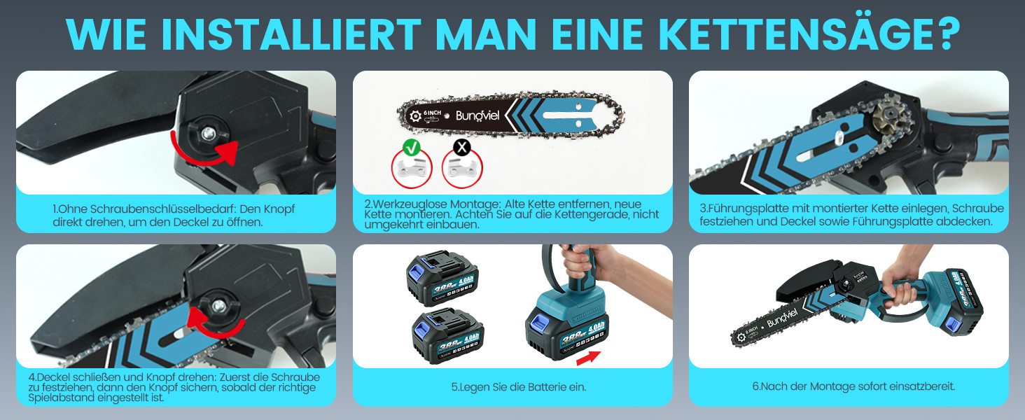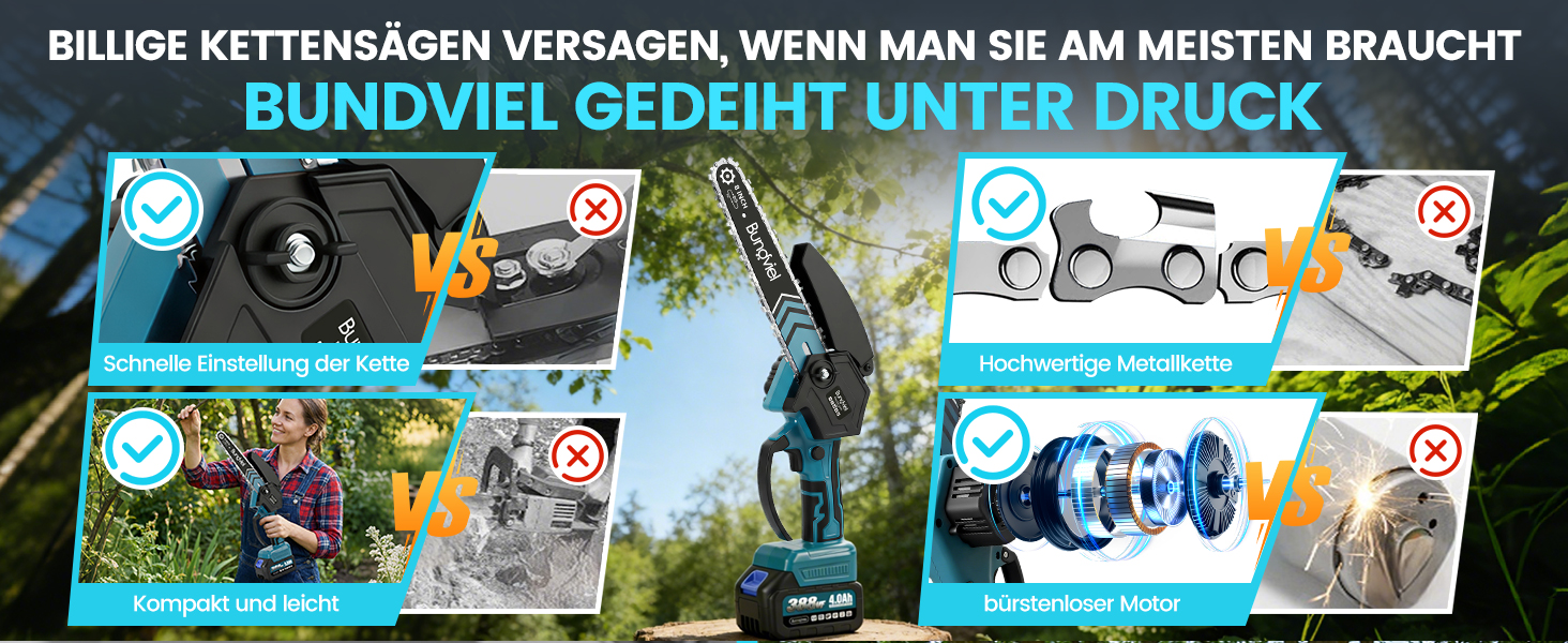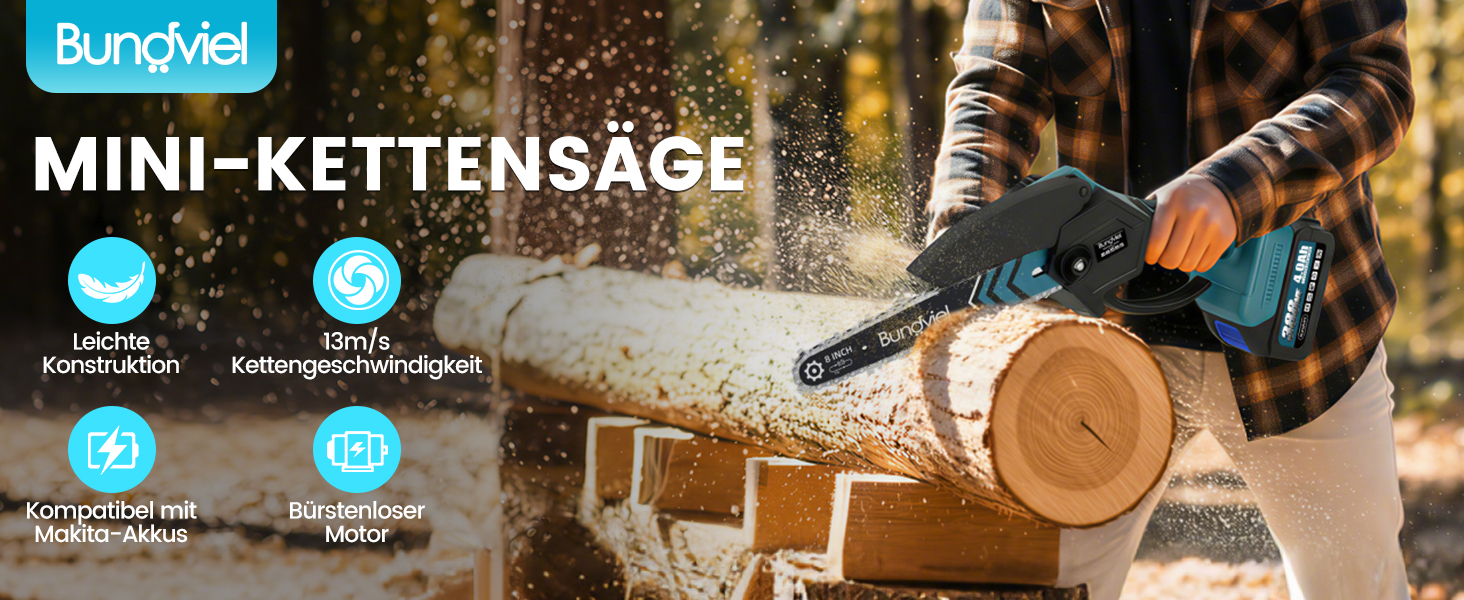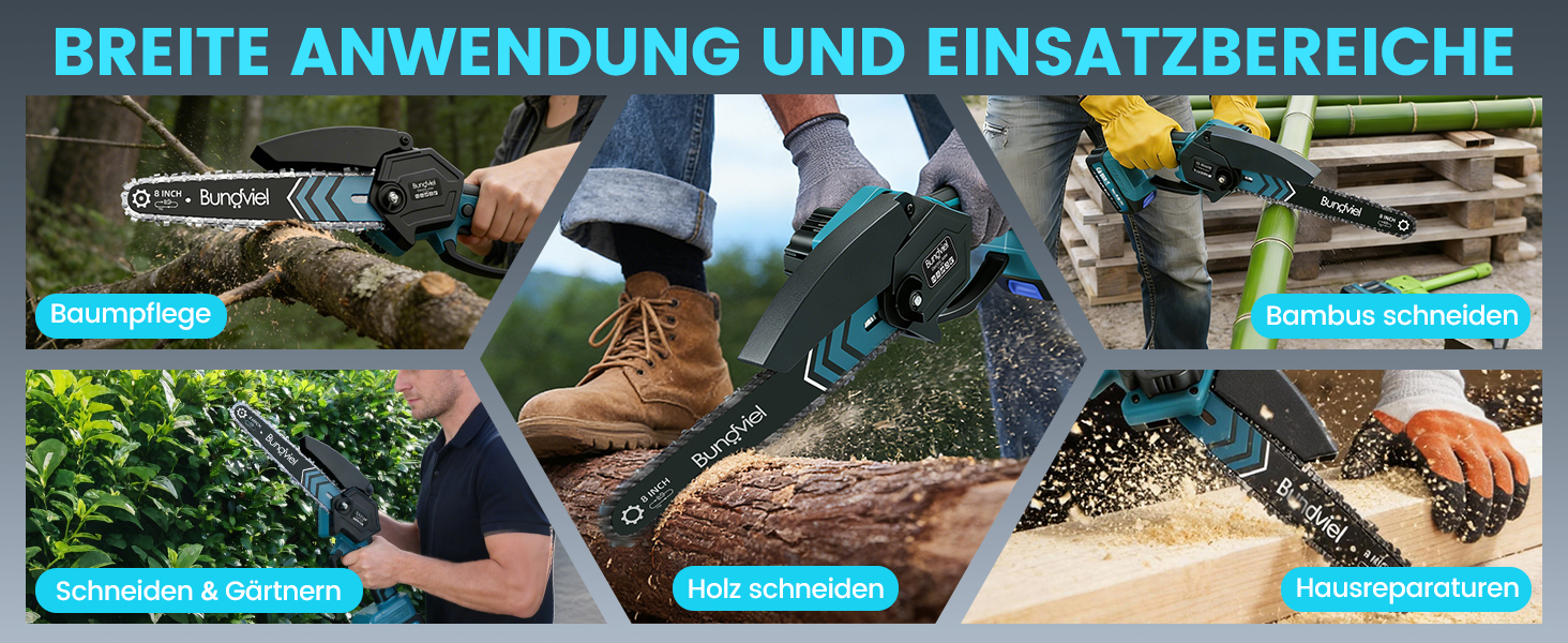 Ob Äste beschneiden, Bäume zurückschneiden oder beim Camping Holz vorbereiten – diese Mini-Kettensäge ist ein kraftvoller Helfer für Garten, Wald, Obstplantage und mehr. Durch die kompakte Bauweise gelangt sie selbst an schwer erreichbare Stellen, wo größere Sägen versagen.