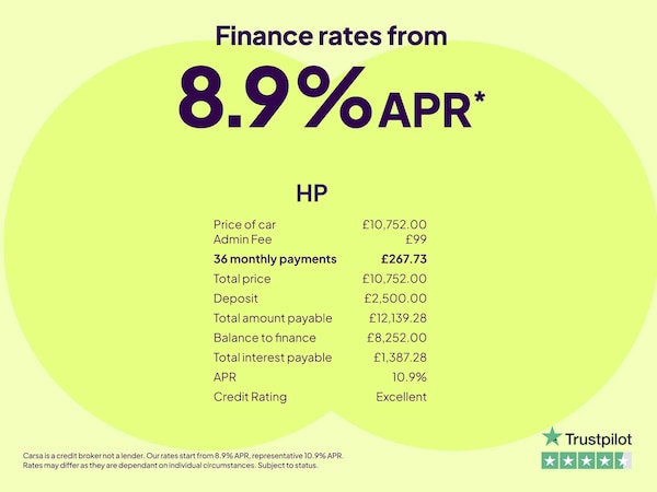 Carsa Ltd is authorised and regulated by the Financial Conduct Authority, FCA Registered Number (FRN) 935130. Carsa Ltd is a Credit Broker not a Lender. Carsa Ltd is an Introducer Appointed Representative of Nukula Limited, which is authorised and regulated by the Financial Conduct Authority, FRN 616475. (VAT No. 356789439). It is our intention to provide a high level of service at all times. However if you have reason to make a complaint about our service (in relation to Insurance Products) you should contact Nukula Limited T/A InsureThat at Sterling House, Sitka Drive, Shrewsbury Business Park, Shrewsbury, SY2 6LG. If we are unable to resolve your complaint satisfactorily, you may be entitled to refer the matter to the Financial Ombudsman Service (FOS). Further information is available by calling the FOS on 0845 080 1800 or visit http://www.financial-ombudsman.org.uk. You can check on the FCA's Register by visiting the FCA website www.fca.org.uk/register or by contacting the FCA on 0800 111 6768. Lenders may pay a fixed commission to us for introducing you to them, calculated by reference to the vehicle model, product or amount you borrow. Different lenders may pay different commissions for such introductions. However, any such amounts lenders pay us will not affect the amount if interest you pay under your finance agreement, all of which are set by the lender concerned. Santander Consumer Finance also provide preferential rates to us for the funding of our vehicle stock.
