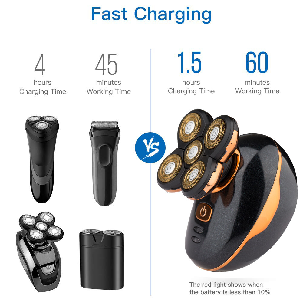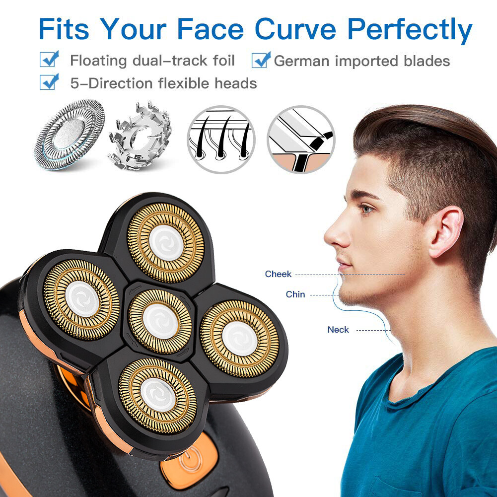 Rotating 5D cutter head for more in-depth shaving and smart floating system will adjust based on your face shape.