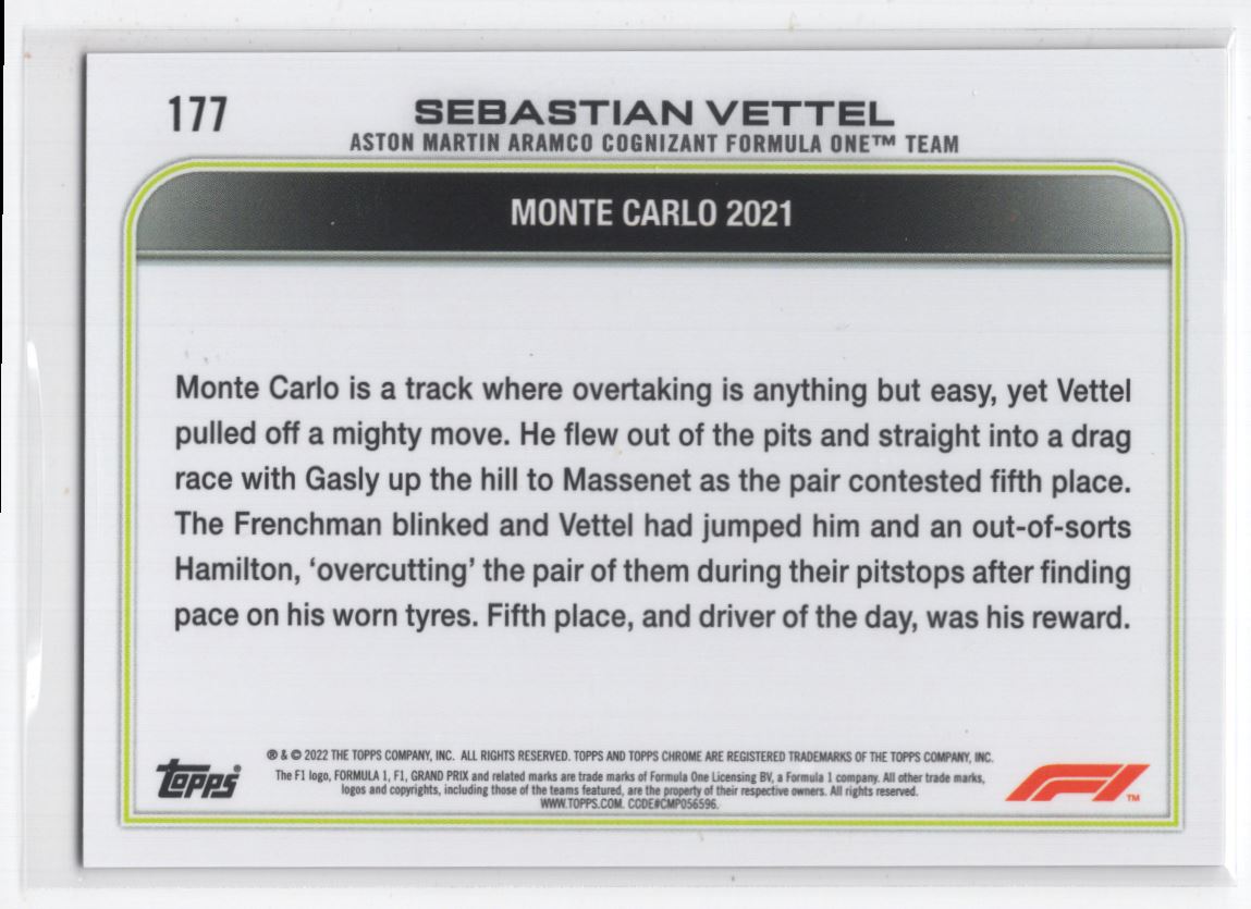 #177 2022 Topps Chrome F1 * Sebastian Vettel Aston Martin Cognizant F1