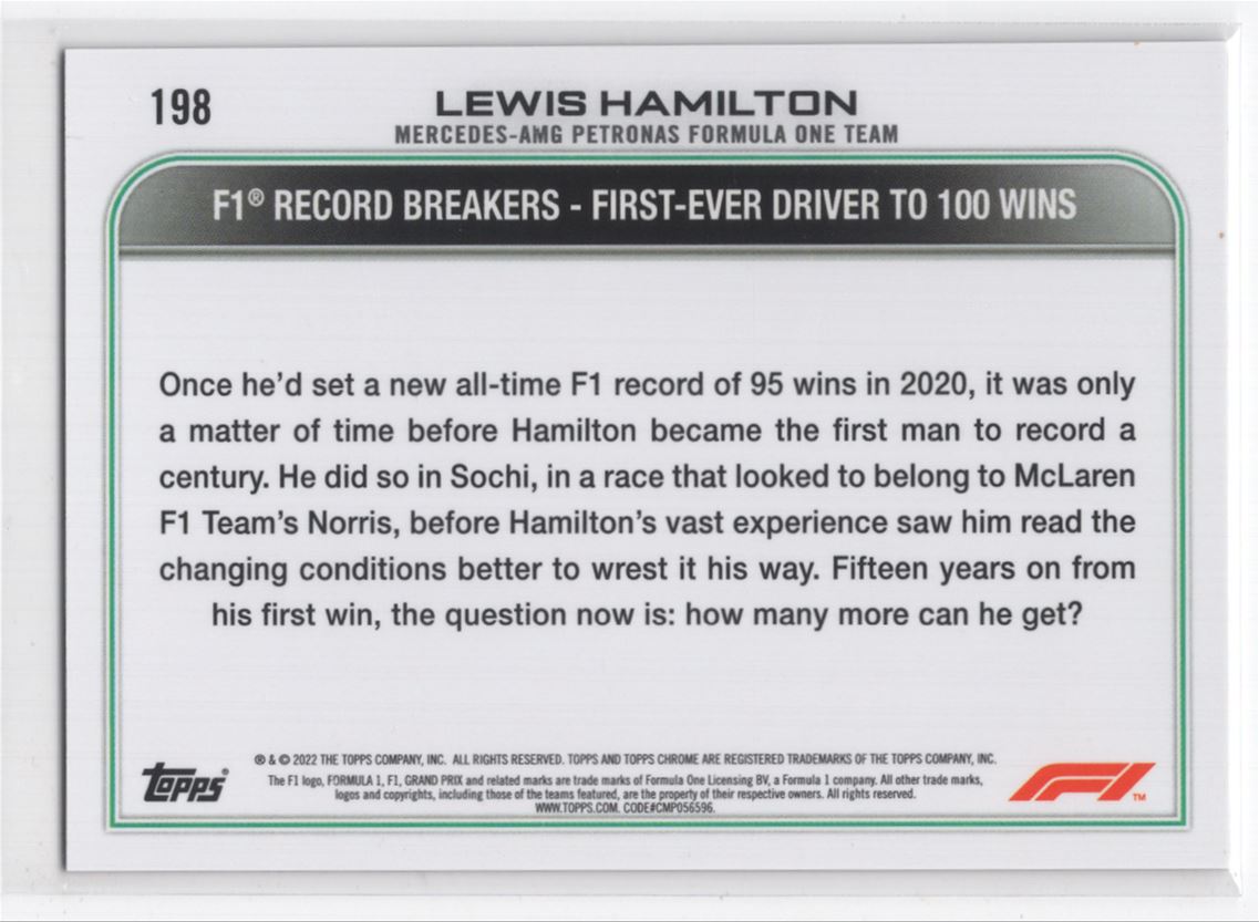 #198 2022 Topps Chrome F1 > Lewis Hamilton Mercedes-AMG Petronas F1