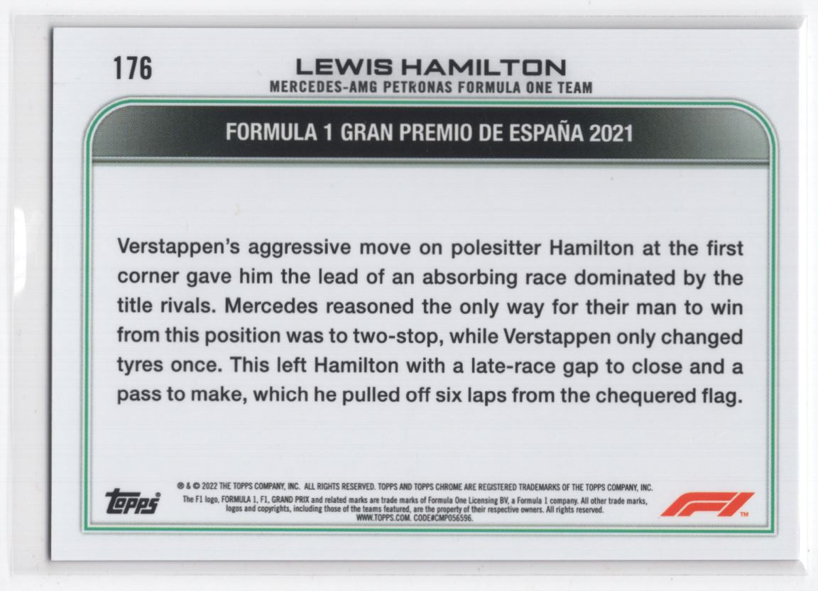 #176 2022 Topps Chrome F1 < Lewis Hamilton Mercedes-AMG Petronas F1