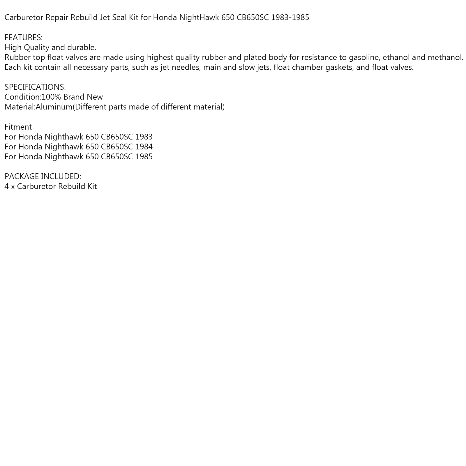 For Honda Nighthawk 650 CB650SC 1983