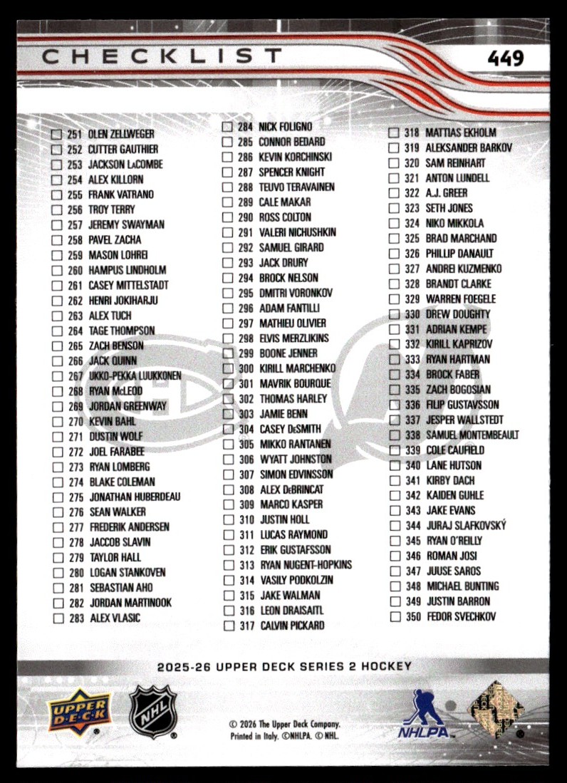 | 2025-26 Upper Deck Base Jack Hughes / Cole Caufield Devils / Canadiens | ||||||||||||||||||