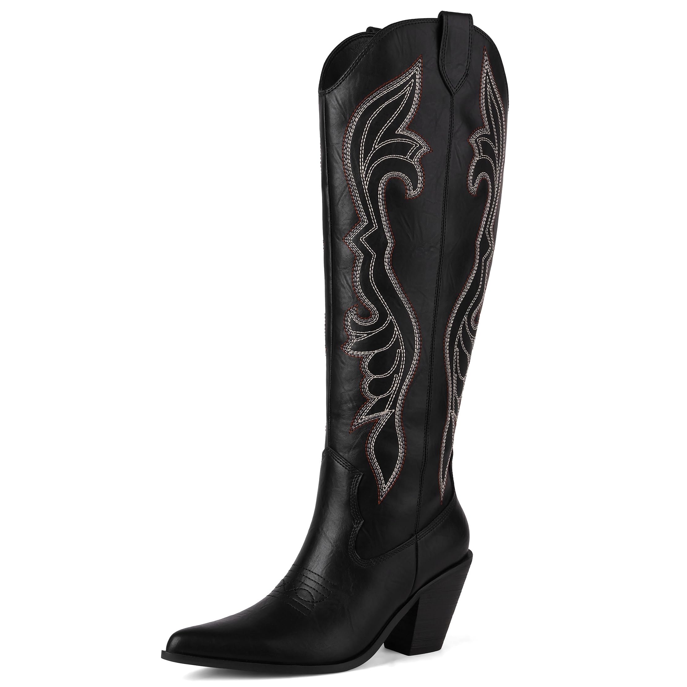 • High-quality & Wide Calf Comfort: Crafted from pu leather, these durable western boots include a spacious wide calf design, ensuring a comfortable fit for all-day wear while maintaining the iconic silhouette of tall cowboy boots.