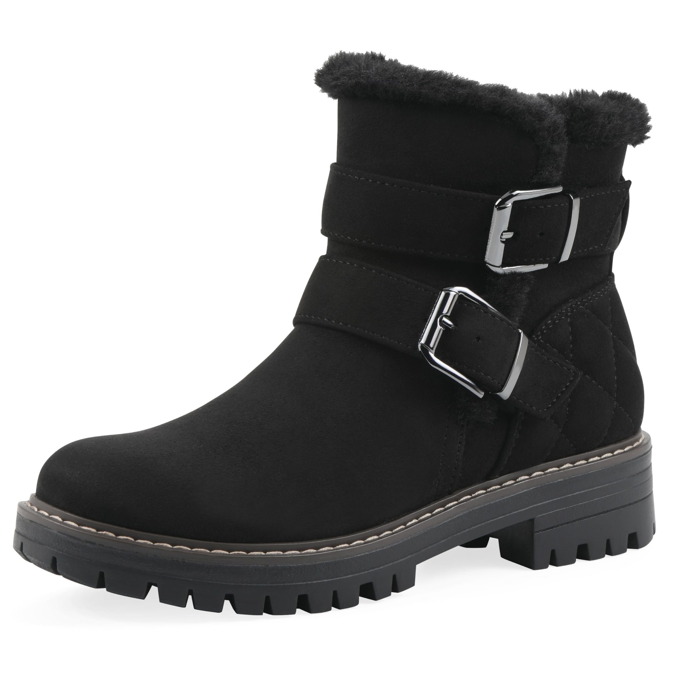 Cliffs by White Mountain Women's Marvin Cushioned Faux Shearling Lined Ankle Bootie, Black/Fabric, 11 W
