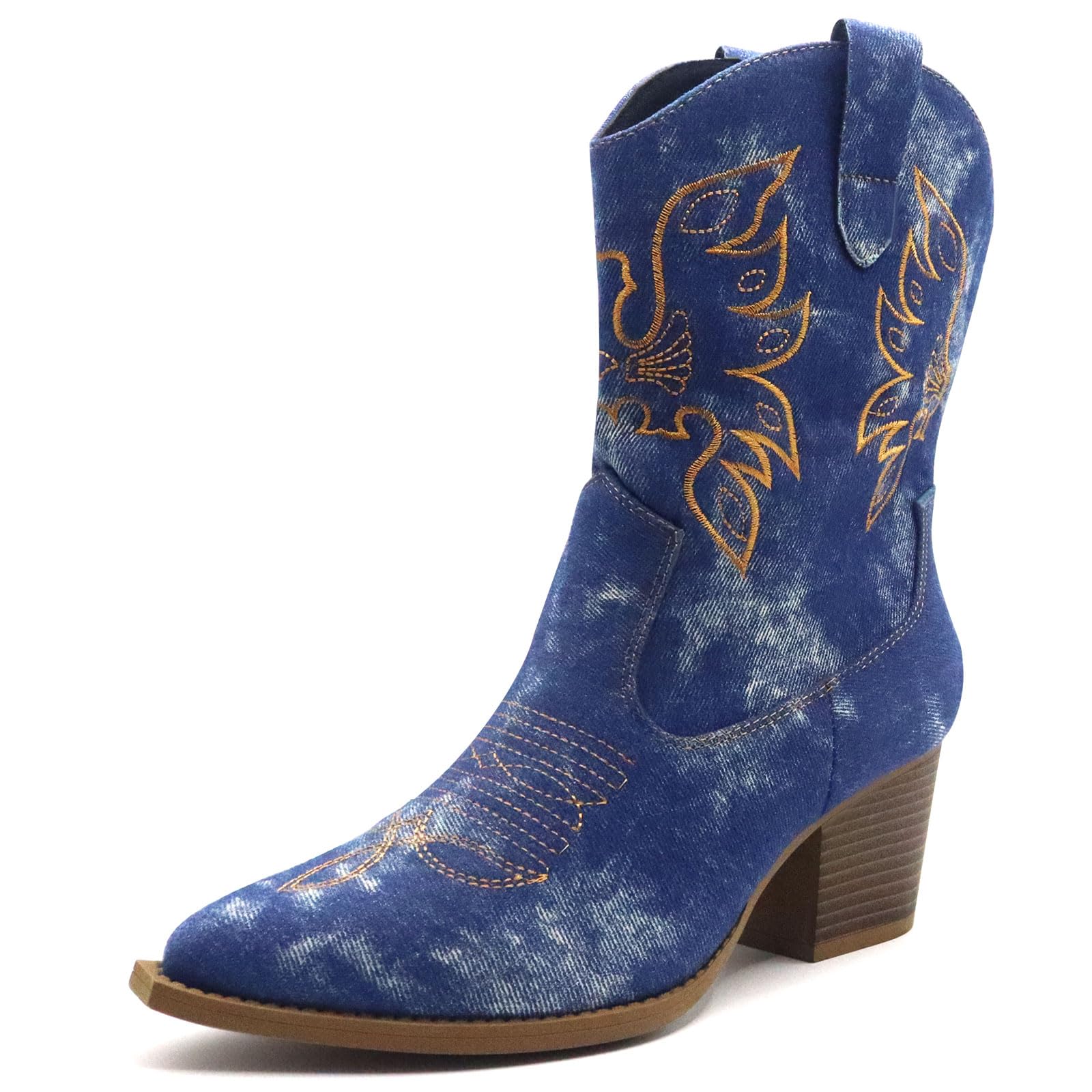 IMUU Cowboy Boots For Women Cowgirl Mid Calf Western Embroidered Boot MidChunky Block Heel Fashion Boots Size8