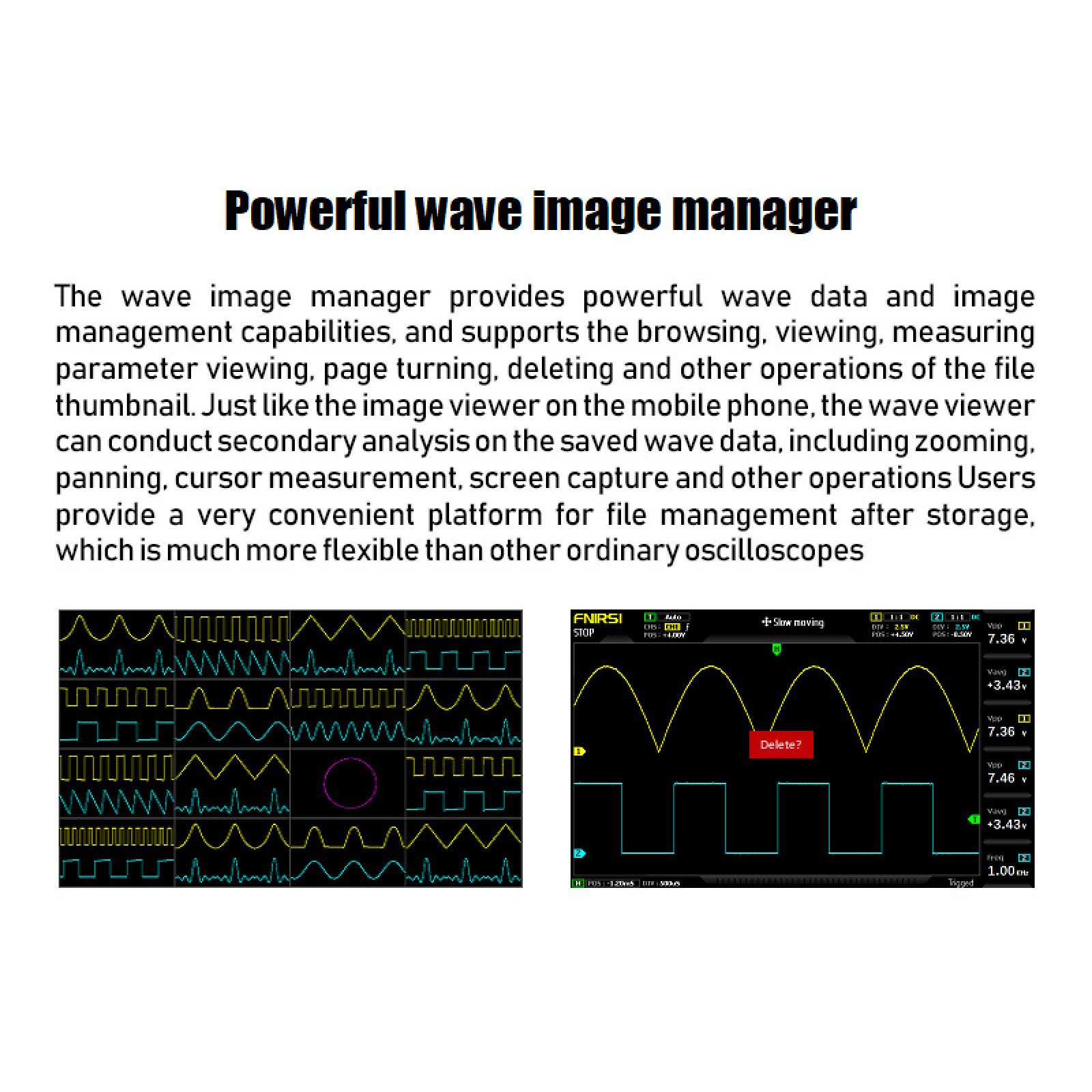 14:Built-in 1GB storage space, can store up to 1000 screenshots + 1000 sets of waveform data
