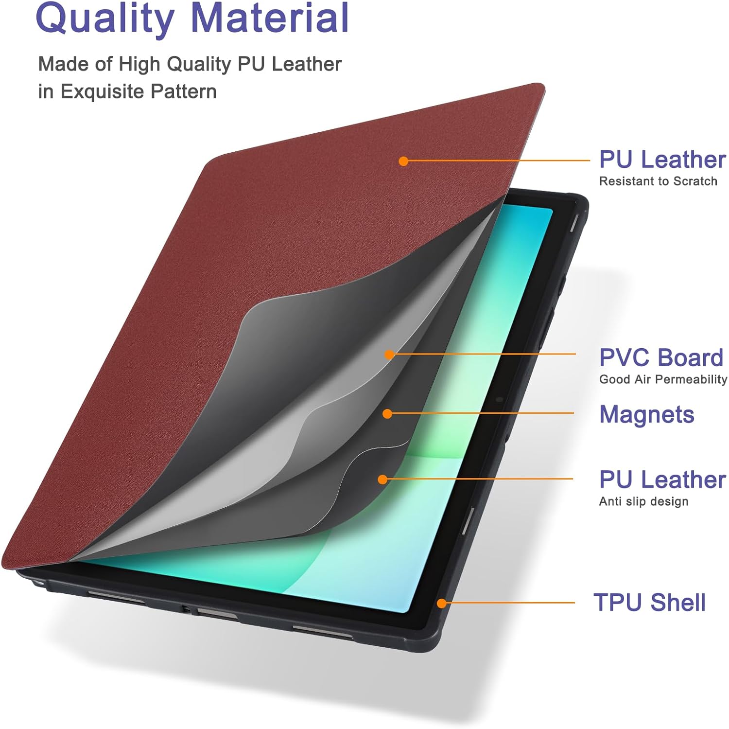 Case for Samsung Galaxy Tab A11+ Plus 11” 2025, Multi-Viewing Angles, All New PU Leather Folio Stand Cover with Auto Sleep Wake Feature for Samsung Galaxy Tab A11+ Tablet 11-inch, Burgundy Red