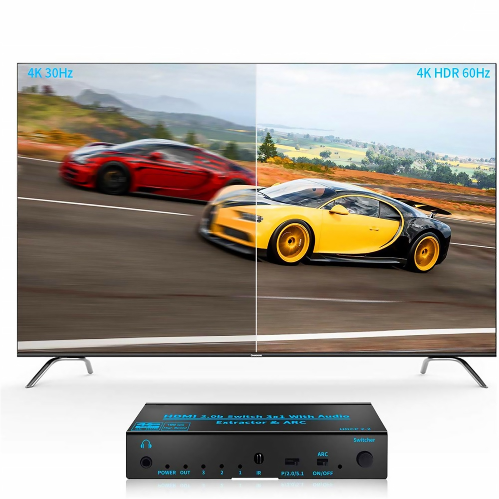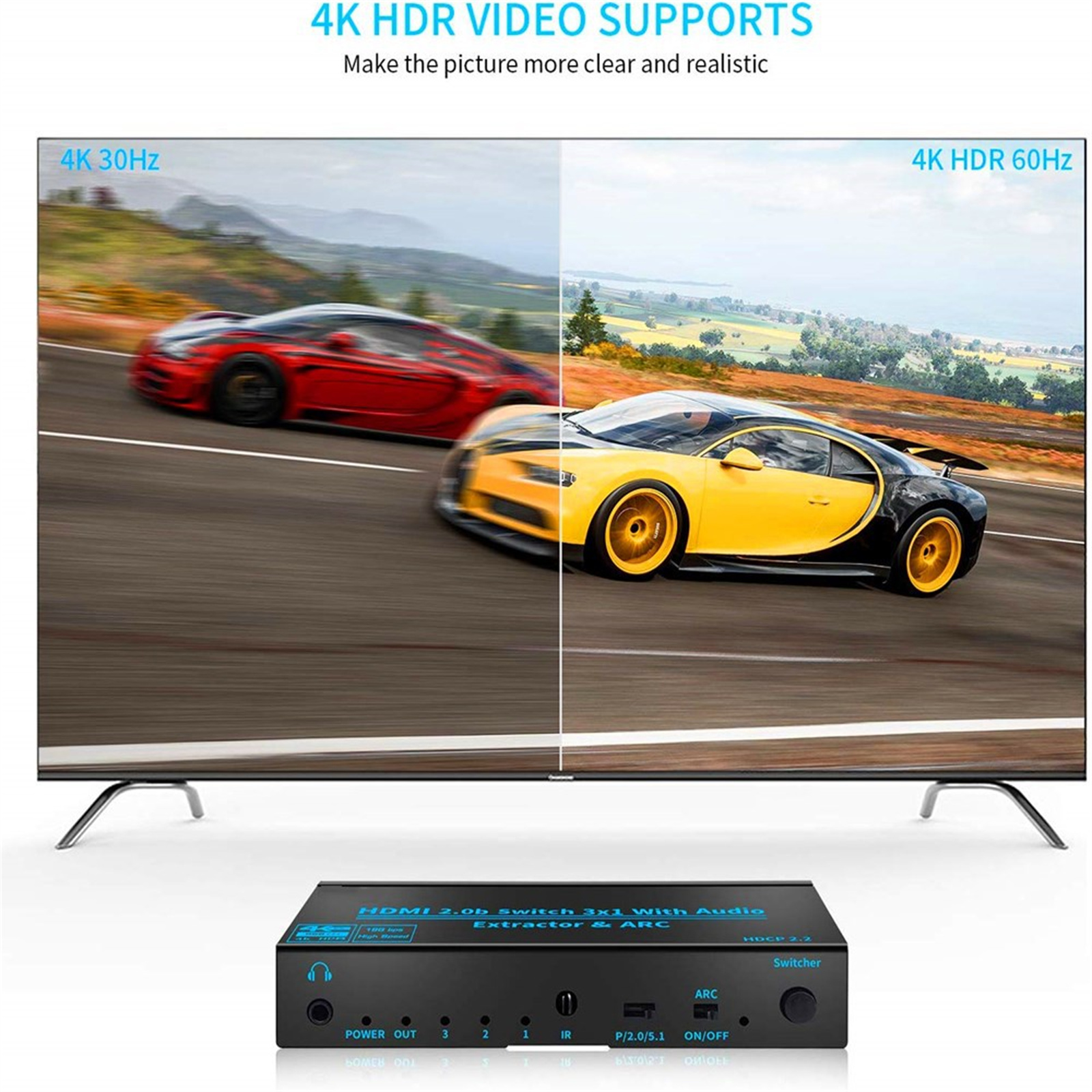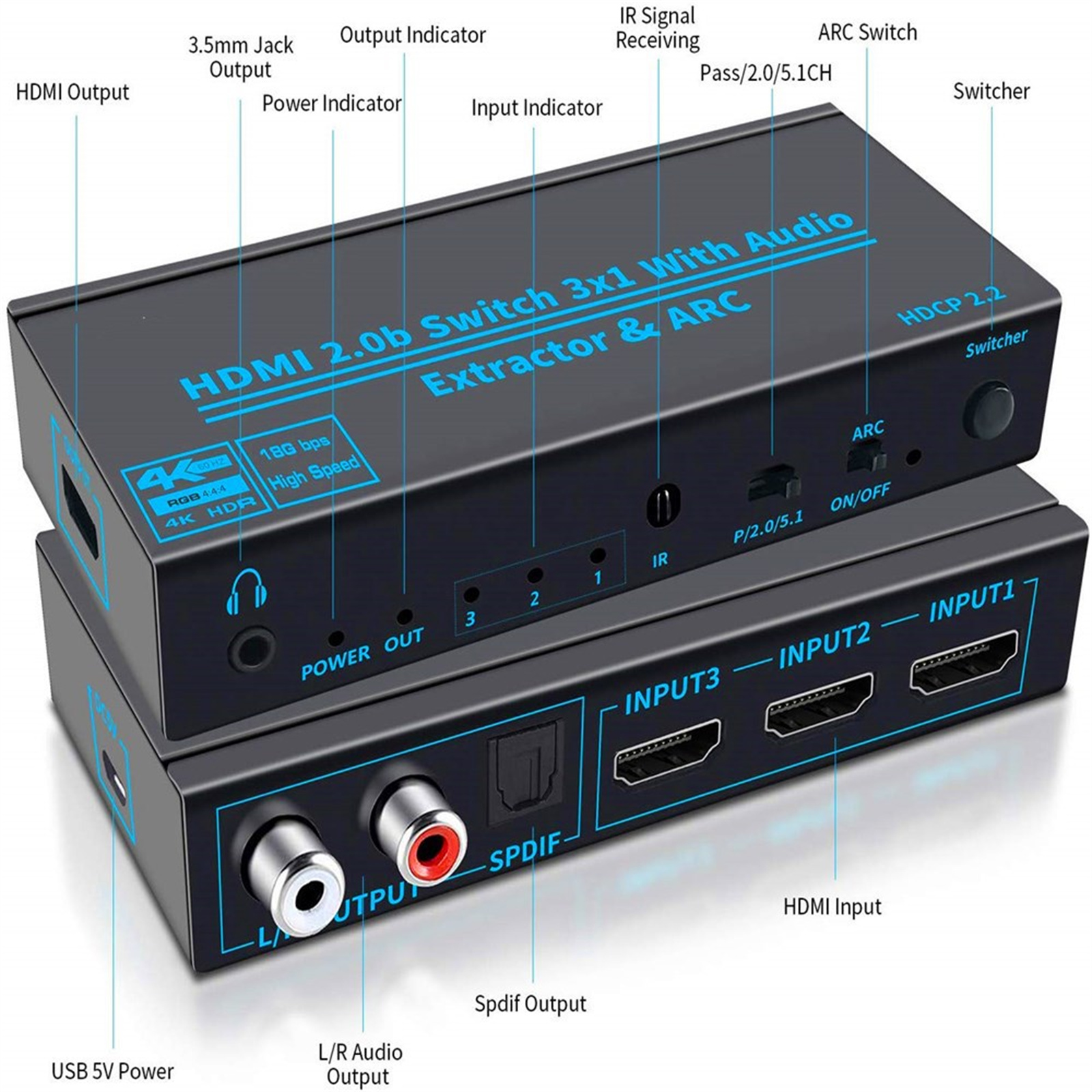 HDMI 3X1 Switch Splitter Audio Extractor 4K 1080P Video Converter For PS4 TV PC
