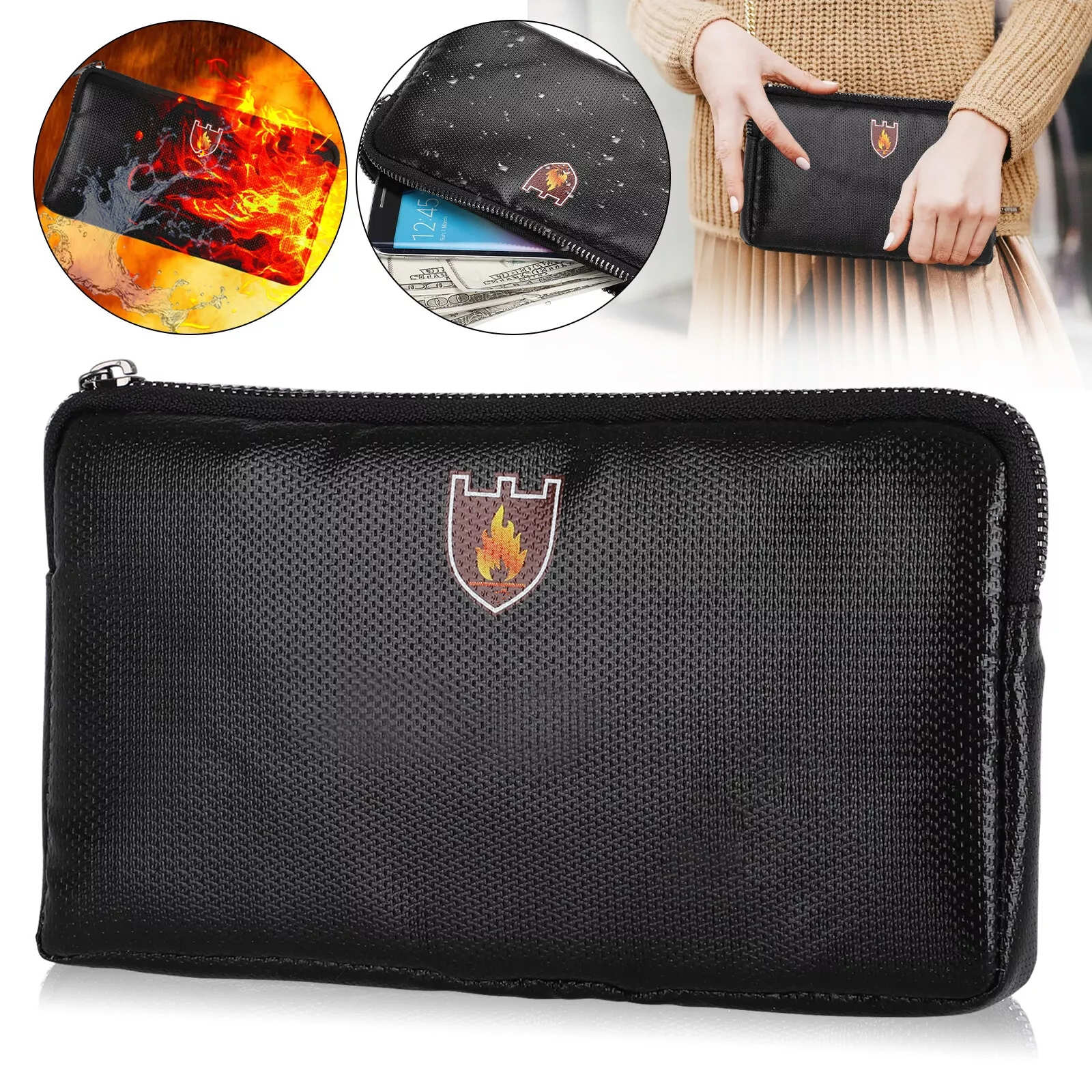 Upgrade Document Pouch Fireproof Waterproof Safe Cash Black Money Bag