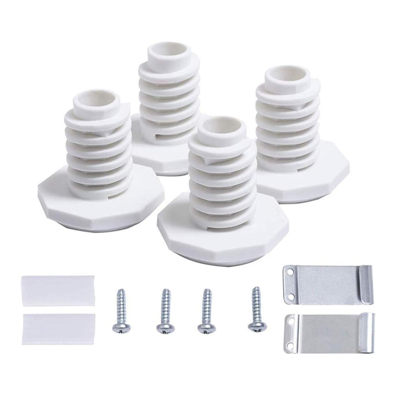 Comprehensive Accessories and guidance: The kit includes all the necessary accessories, such as washing machine feet, flat head screws, plastic clips and hook brackets, to ensure that users can complete stack installation safely and quickly.