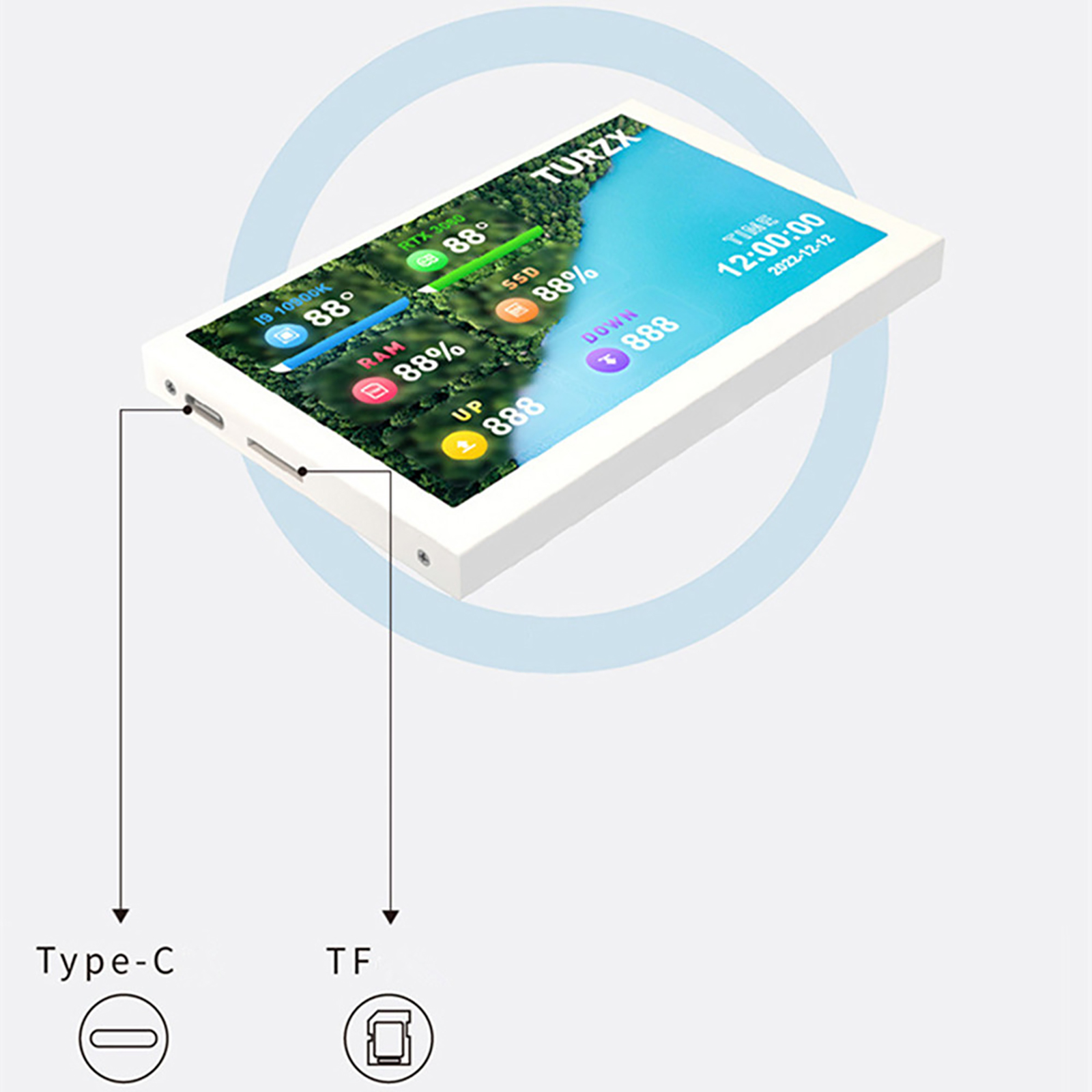 3. Detailed Display: This mini ITX PC case monitor displays CPU, GPU, RAM usage rate and temperature, speed, date, time, volume, and weather forecast