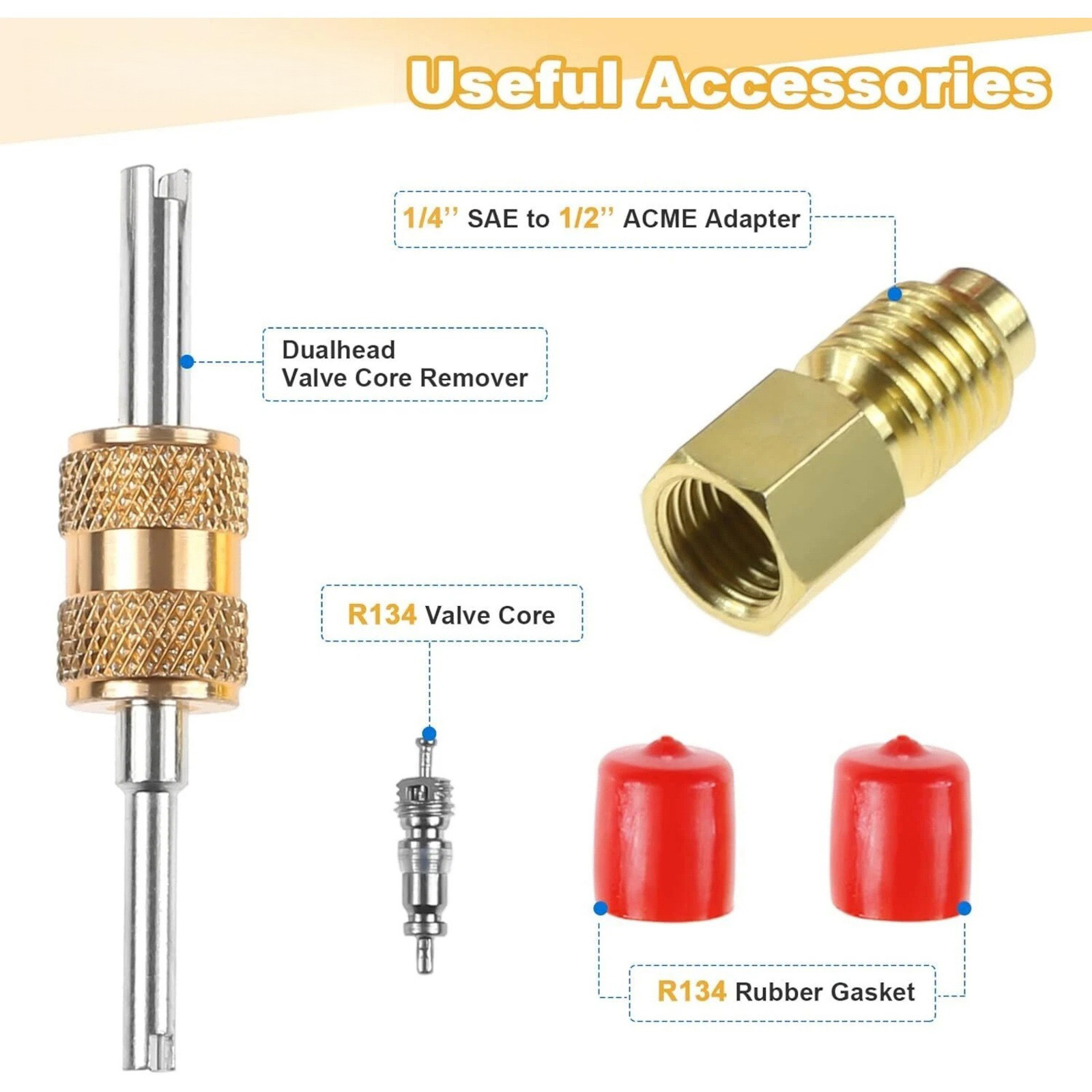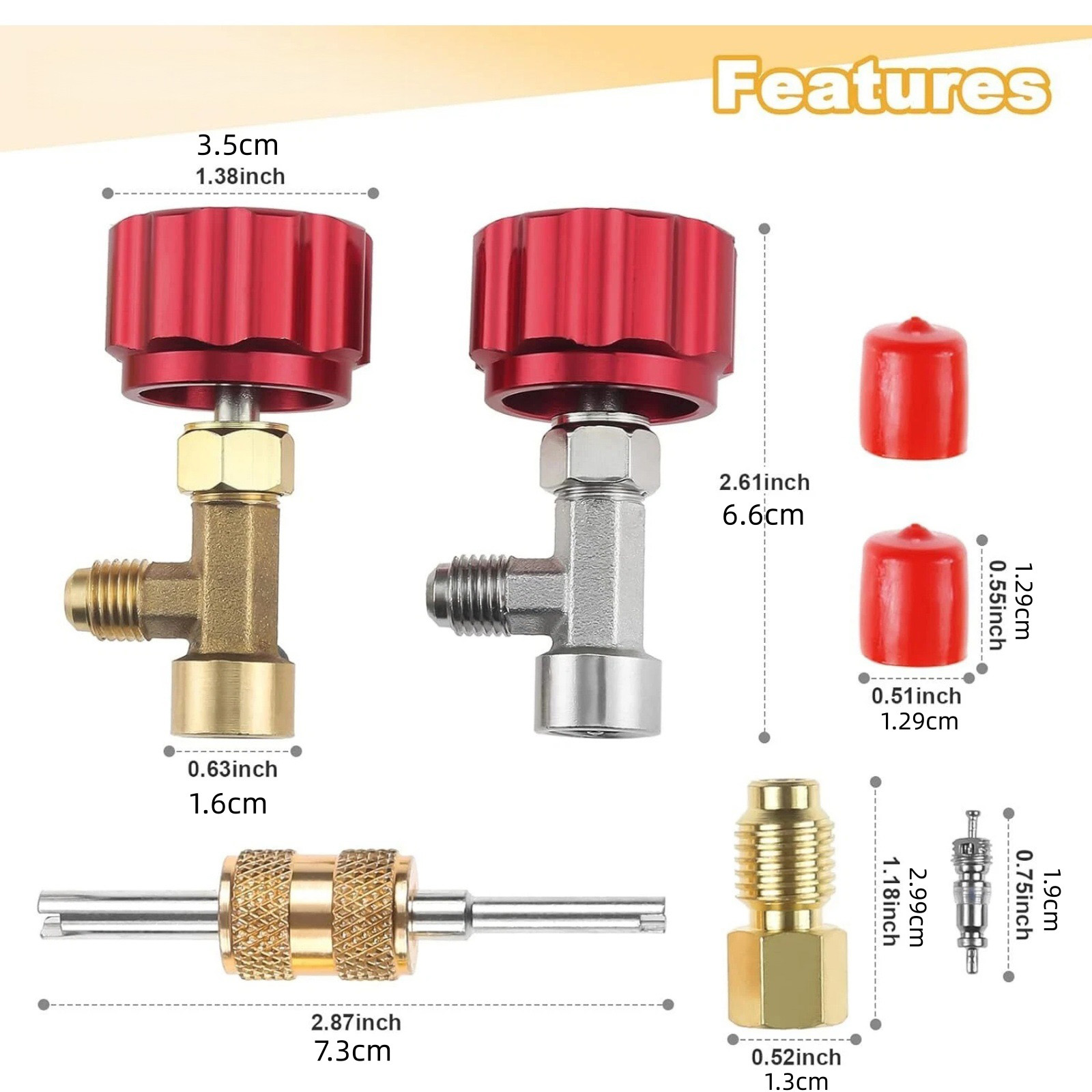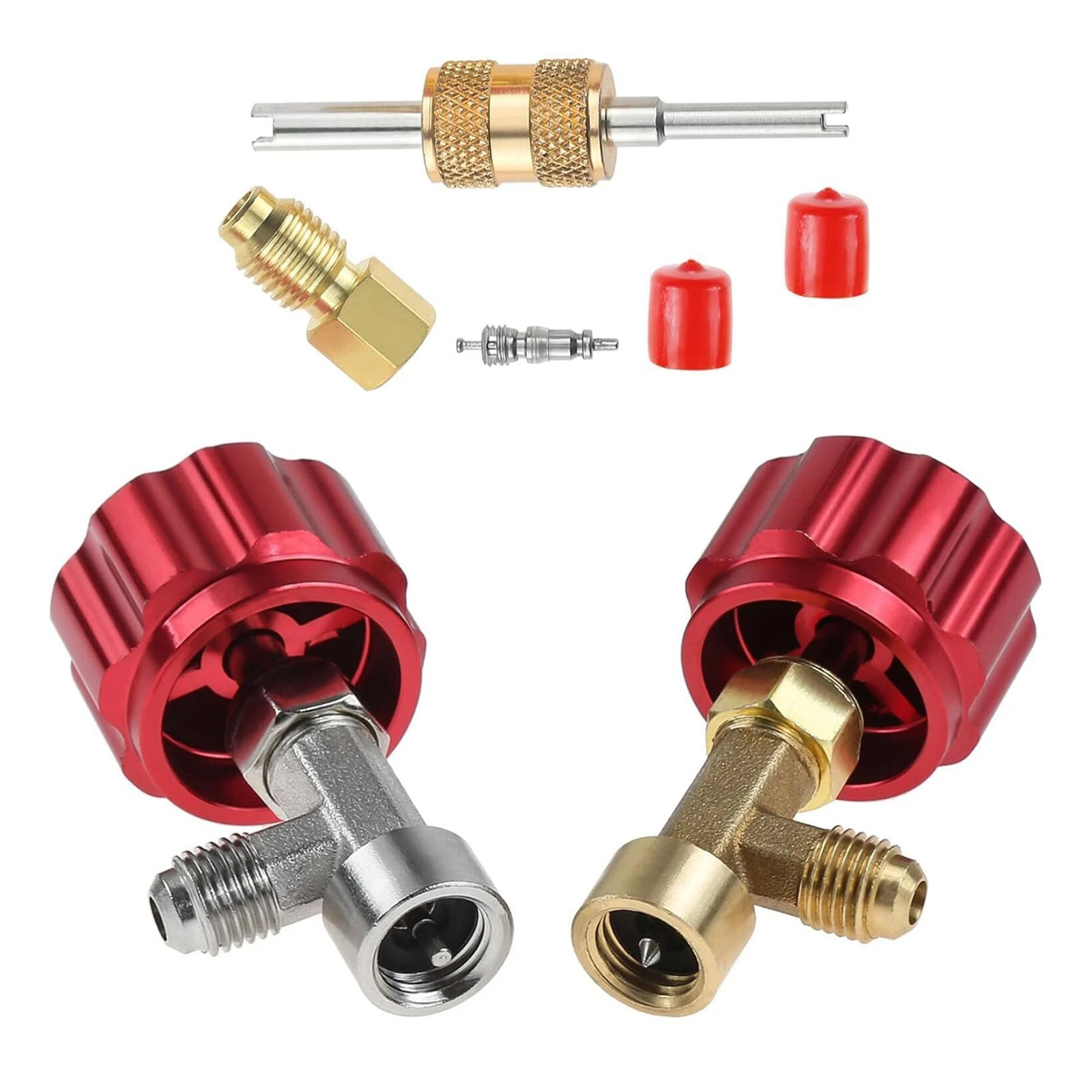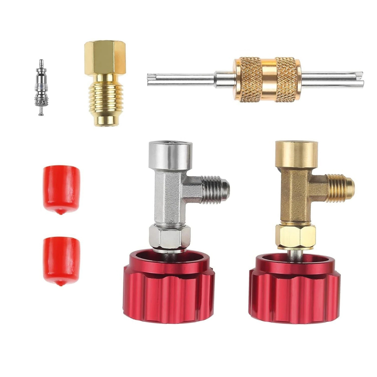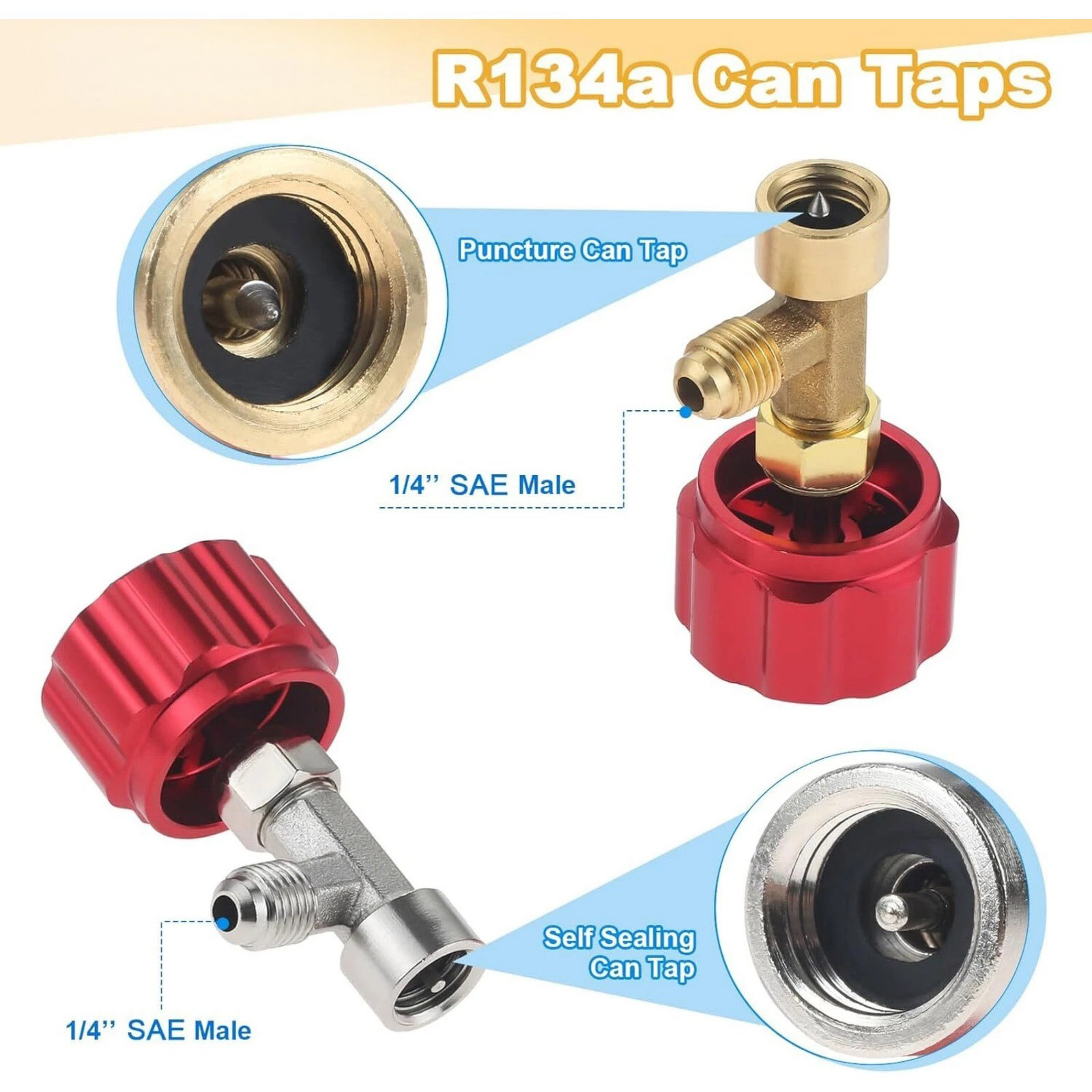 PERFECT DESIGN: This R134A Can Tap kits are made of sturdy premium brass and aluminum or longtime use without damage, suitable for self-sealing Freon can and the old-style single puncture bottle, and features with thicken rubber seals to prevent leaking.