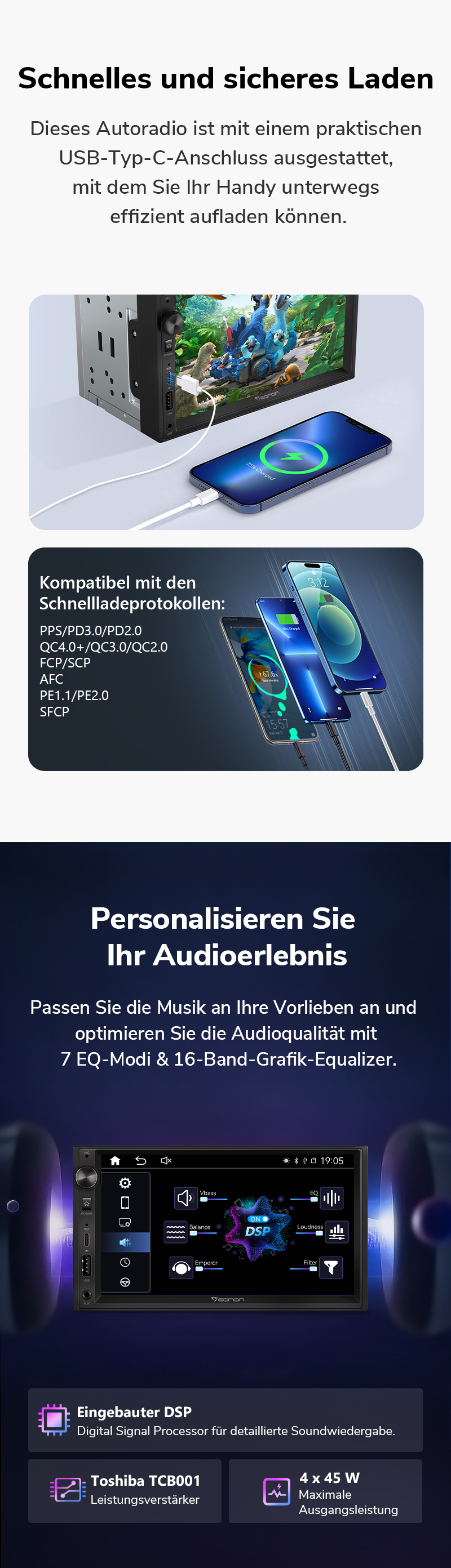 Rüsten Sie Ihr Fahrzeug mit einem modernen Doppel DIN Autoradio Upgrade auf, das als vielseitiger 2DIN Radio Ersatz mehr Komfort und bessere Konnektivität in den Alltag bringt. Dieses Autoradio mit Wireless CarPlay und Android Auto ermöglicht Ihnen eine intuitive Nutzung von Navigation, Musik und Freisprechen, egal ob im Berufsverkehr oder auf längeren Fahrten. Mit klarem QLED Touchscreen, integriertem DSP Sound und stabiler Linux-Plattform bietet es eine zuverlässige Alternative zu komplexen Android Systemen und eignet sich ideal als Nachrüst Radio für Fahrer, die Wert auf einfache Bedienung, besseren Klang und ein modernes Fahrerlebnis legen.