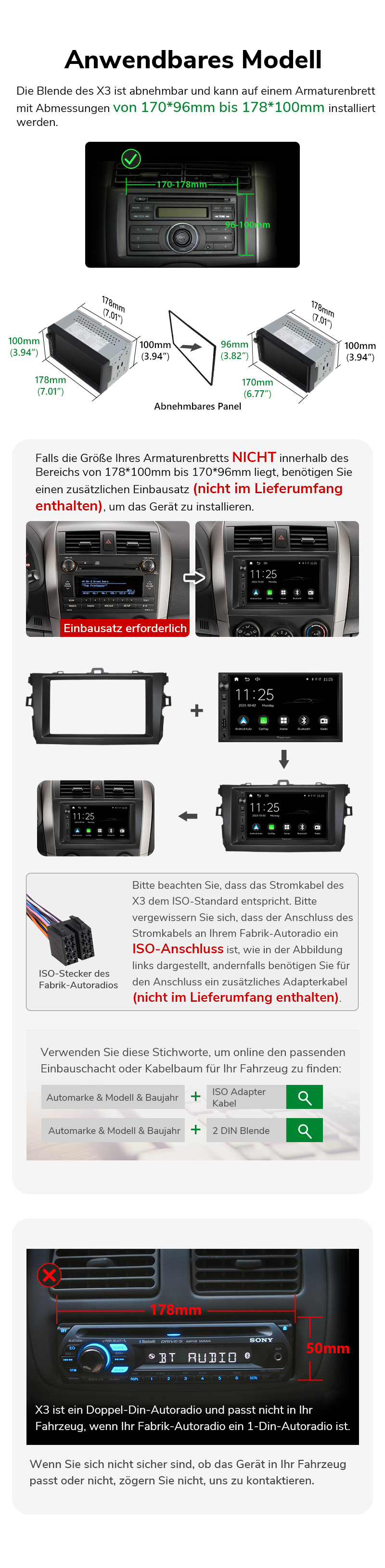 ⚠️ Wichtige Hinweise vor dem Kauf 1️⃣ Universelles Doppel-DIN Gerät – ggf. Blende oder Adapter erforderlich