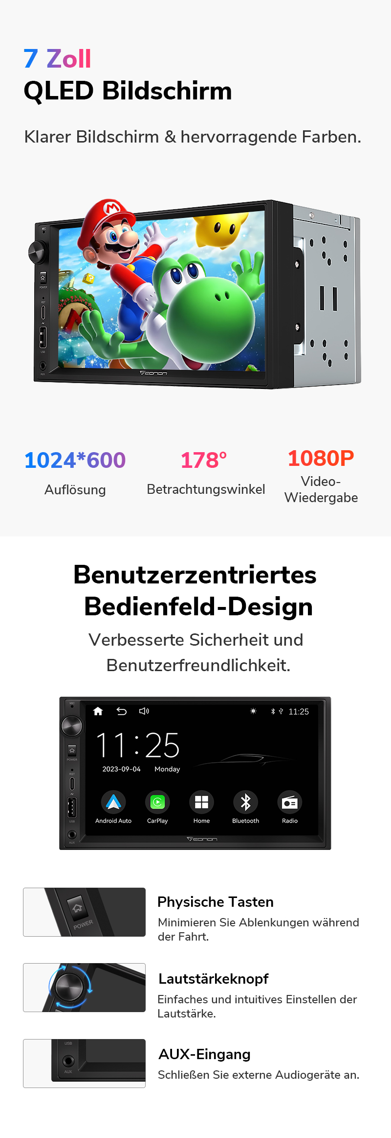 ⭐ Eonon X3 – Kompaktes Doppel-DIN Autoradio mit 7" QLED, DSP & Wireless CarPlay / Android Auto