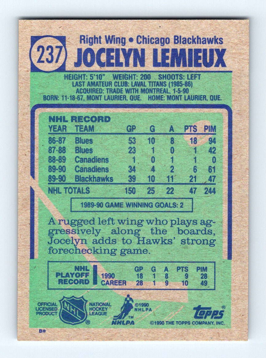 #237 1990-91 Topps Jocelyn Lemieux RC Chicago Blackhawks