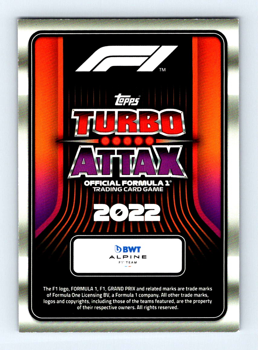 #210 2022 Topps Turbo Attax F1 Live Action Fernando Alonso