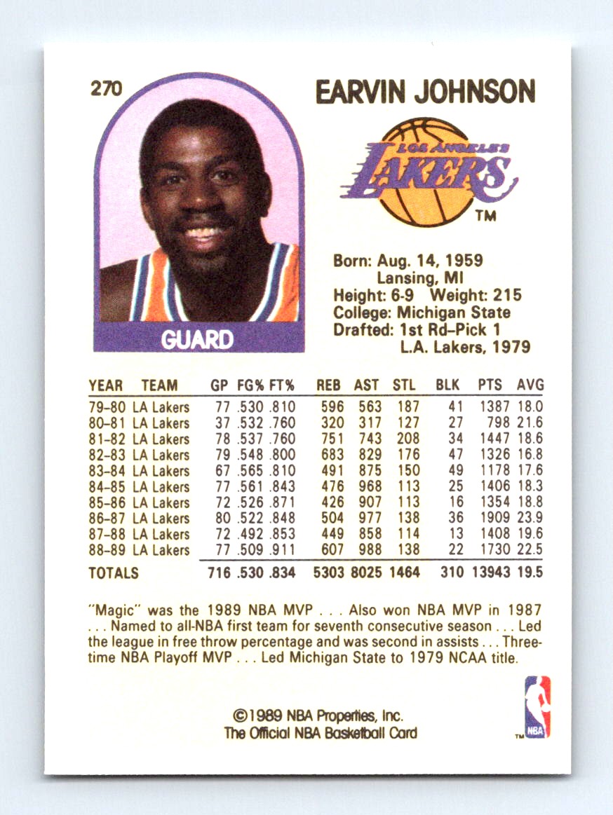 #270 1989-90 Hoops + Earvin Magic Johnson Los Angeles Lakers