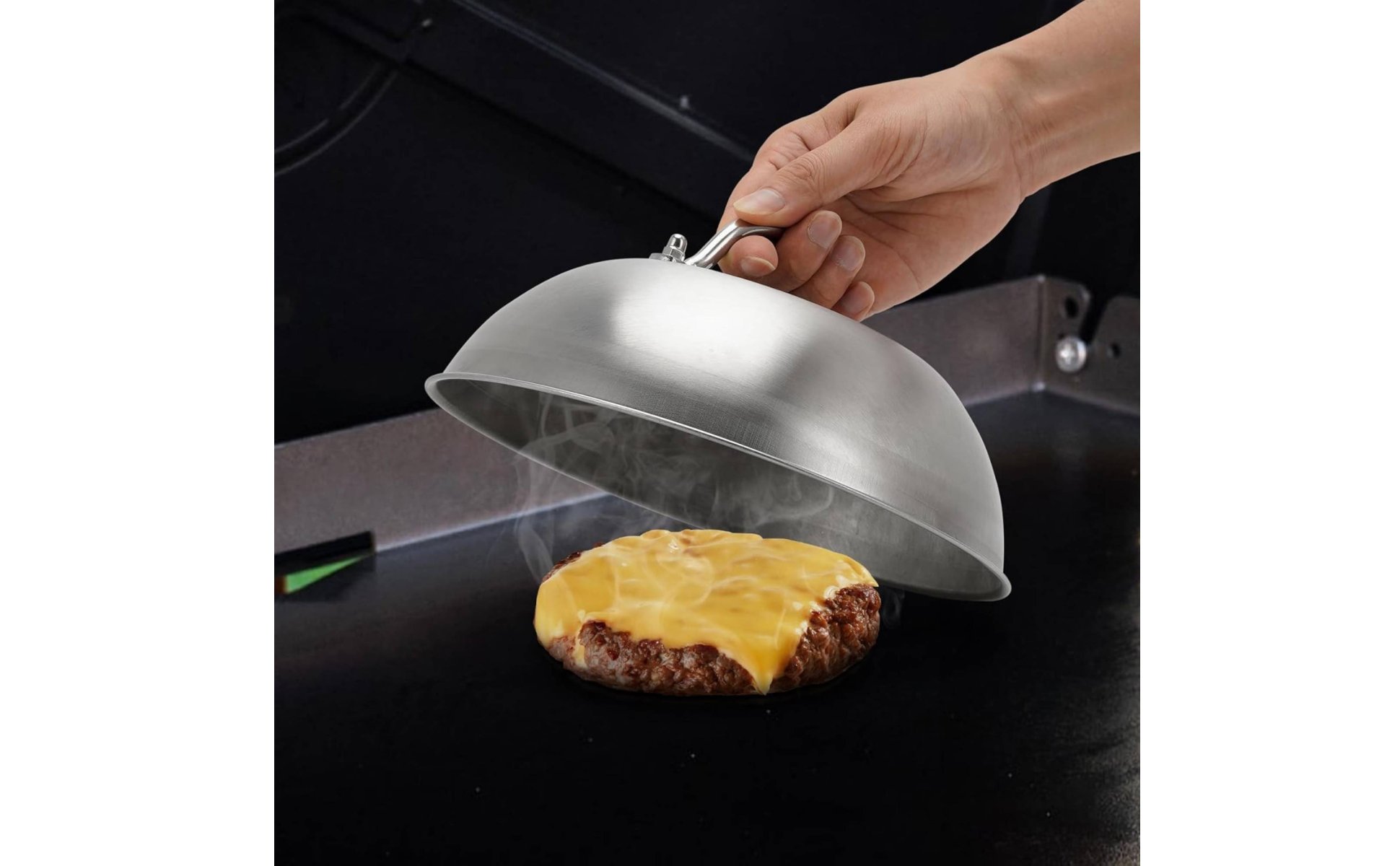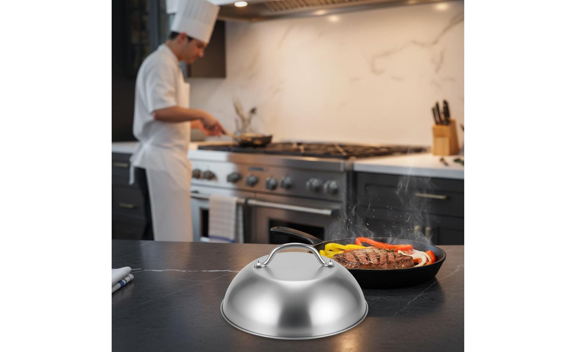 【Professional Results】: The dome shape makes it an ideal stainless steel pot lid for concentrating heat to cook burger patties evenly and melt toppings to perfection.