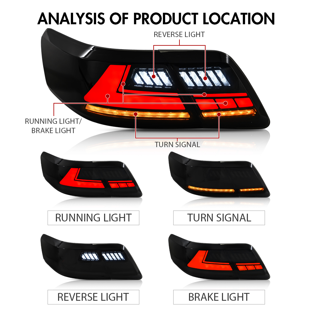 LED Tail Lights for Toyota Camry 6th Gen 2007-2011 Start Up Animation Rear Lamps