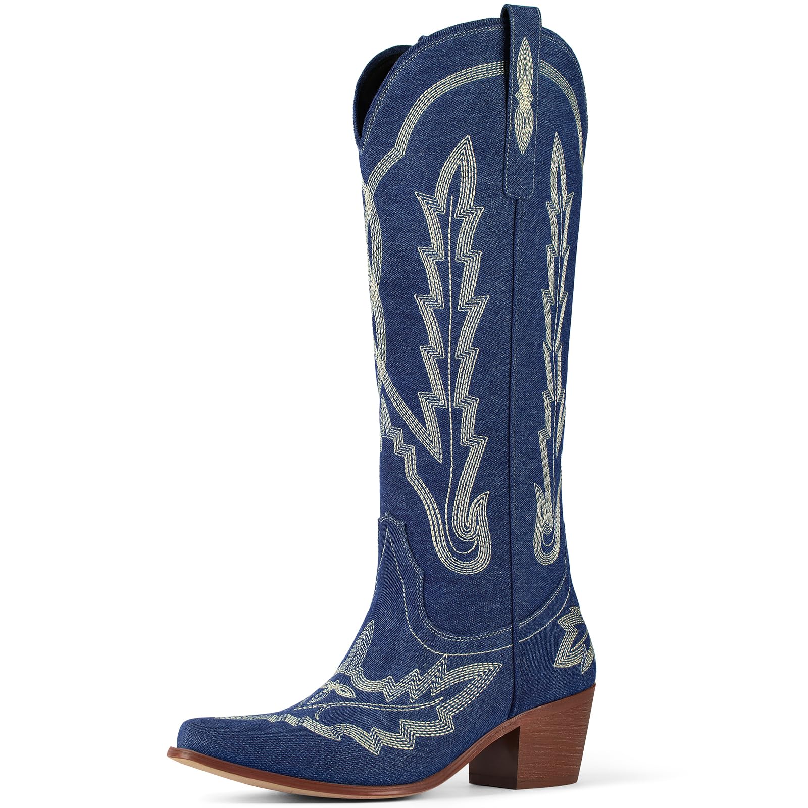 DescriptionStep into timeless style with these vintage-inspired cowgirl boots, where intricate embroidery meets modern fashion. Featuring a slip-on design, a classic almond toe, and a sturdy block heel for added stability, they are crafted for all-day comfort with a cushioned insole and breathable lining. Made from durable synthetic leather with slip-resistant soles, these versatile knee-high cowboy boots pair effortlessly with jeans or dresses, making them suitable for casual outings or special rustic-themed occasions. A practical and stylish choice, they are ready to become a cherished part of any wardrobe.