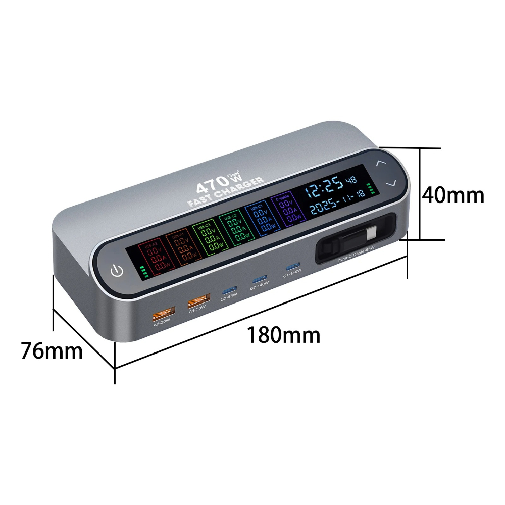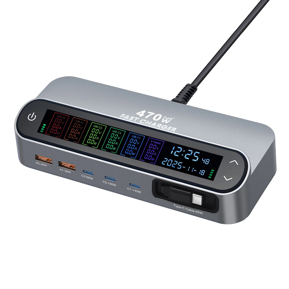 470W GaN Fast Charger 140W PD3.1 PPS USB Type-C Digital Display Charging Station for iPhone 16/15 MacBook Laptops Samsung